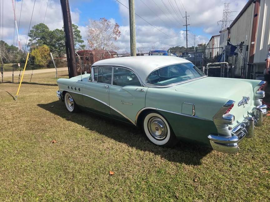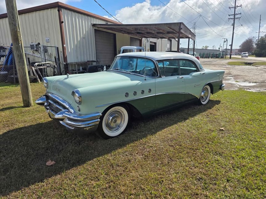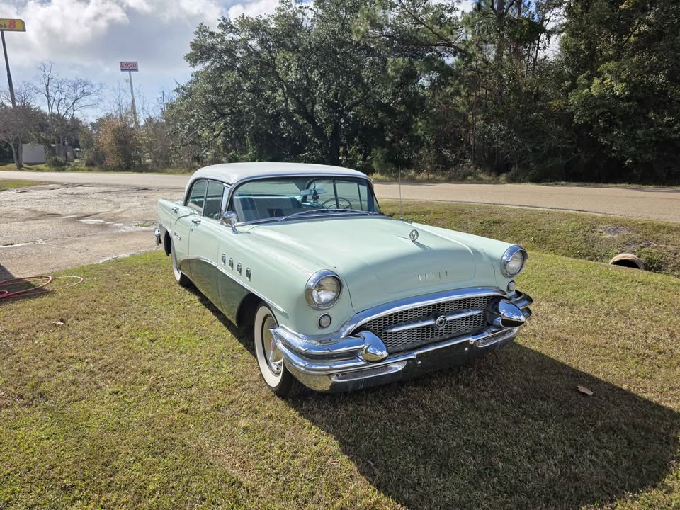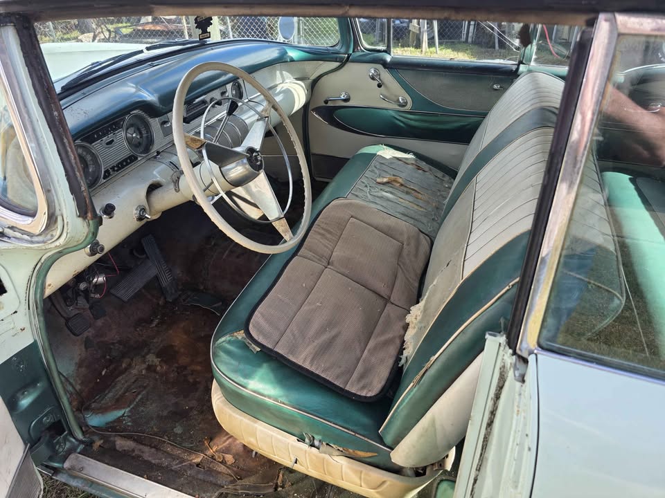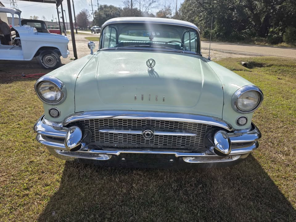 Pretty nice 1955 Buick Century 4 door hard top. 322 nailhead motor runs good car is pretty good shape for a 55, Seamist green and Nile green paint is old and shows it, chrome has some pits, has a couple bubbles here and there on the car. Floorboards are good, has one spot under rear seat(pictured) needs carpet, and front seat has wear.