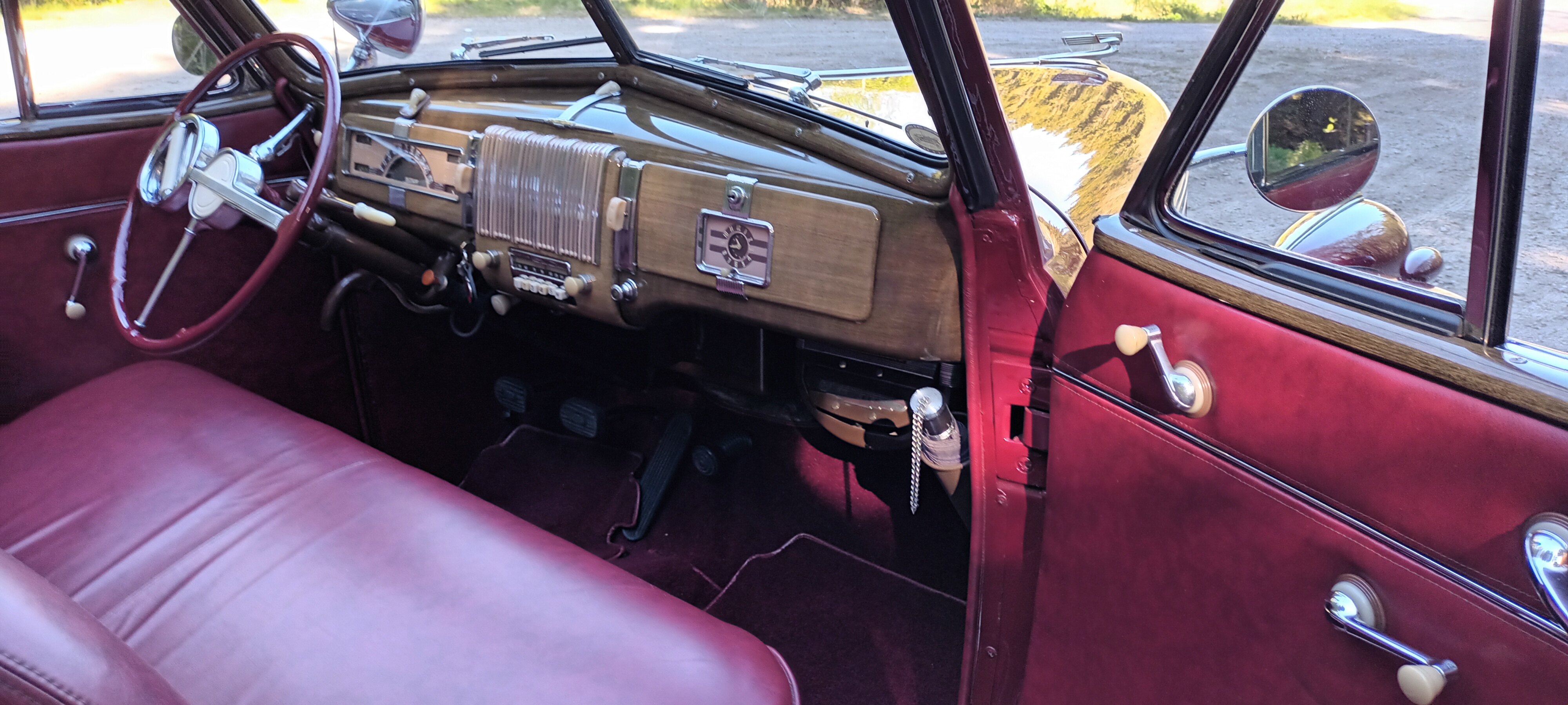 Bilen är i ett mycket fint skick. Prisvinnare! Den har alla options som fanns till Special De Luxe modellen 1940. Det är enda exemplaret i Sverige.