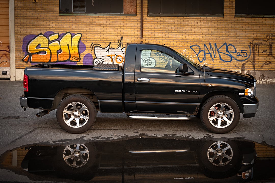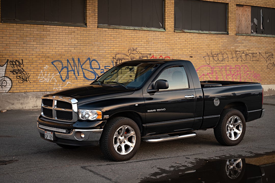 Här har ni chansen att köpa en svart metallic pickup 2005 Dodge Ram Hemi Magnum 5,7l lågmilare i fint skick.