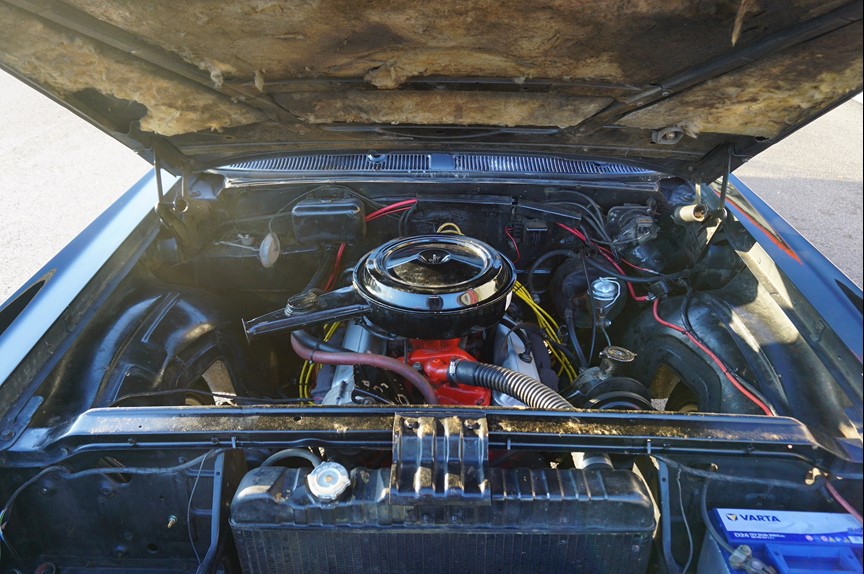 Äldre omlackering i originalkulören GM A Ebony black och hållet ett gott skick. Krom och lister sitter där det ska och är i gott skick. Fin vit inredning. Svart cab som är i gott skick. Frisk och fräsch kaross!