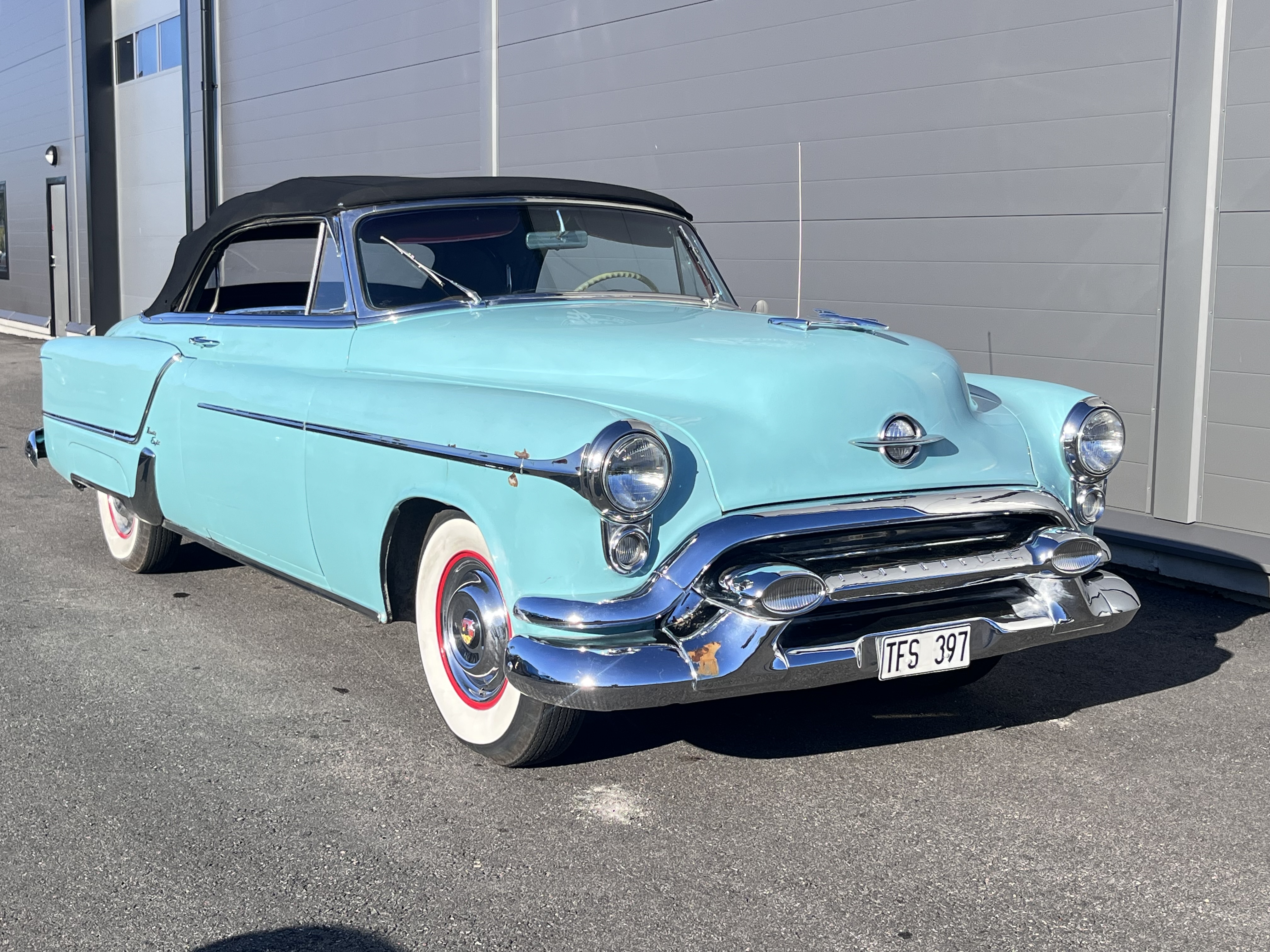 V8 automat, Härligt solid Top of the line Oldsmobile 98, 53a Fullutrustad med fönsterhissar, servo, Går oerhört fint maskinellt! Några lack defekter bland annat höger framskärm, ruta cab behövs bytas, RING FÖR MER INFO!!
