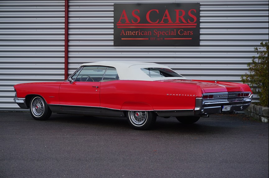 En trevlig välutrustad Bonneville cab med 389 V8 och 400 automat. Äldre omlackering som fått lite märken under årens gång. Krom och lister är blankt och håller ett bruksskick. Nyare vit cab i mycket gott skick. Vit inredning i fint skick. Finns lite att göra om man vill.