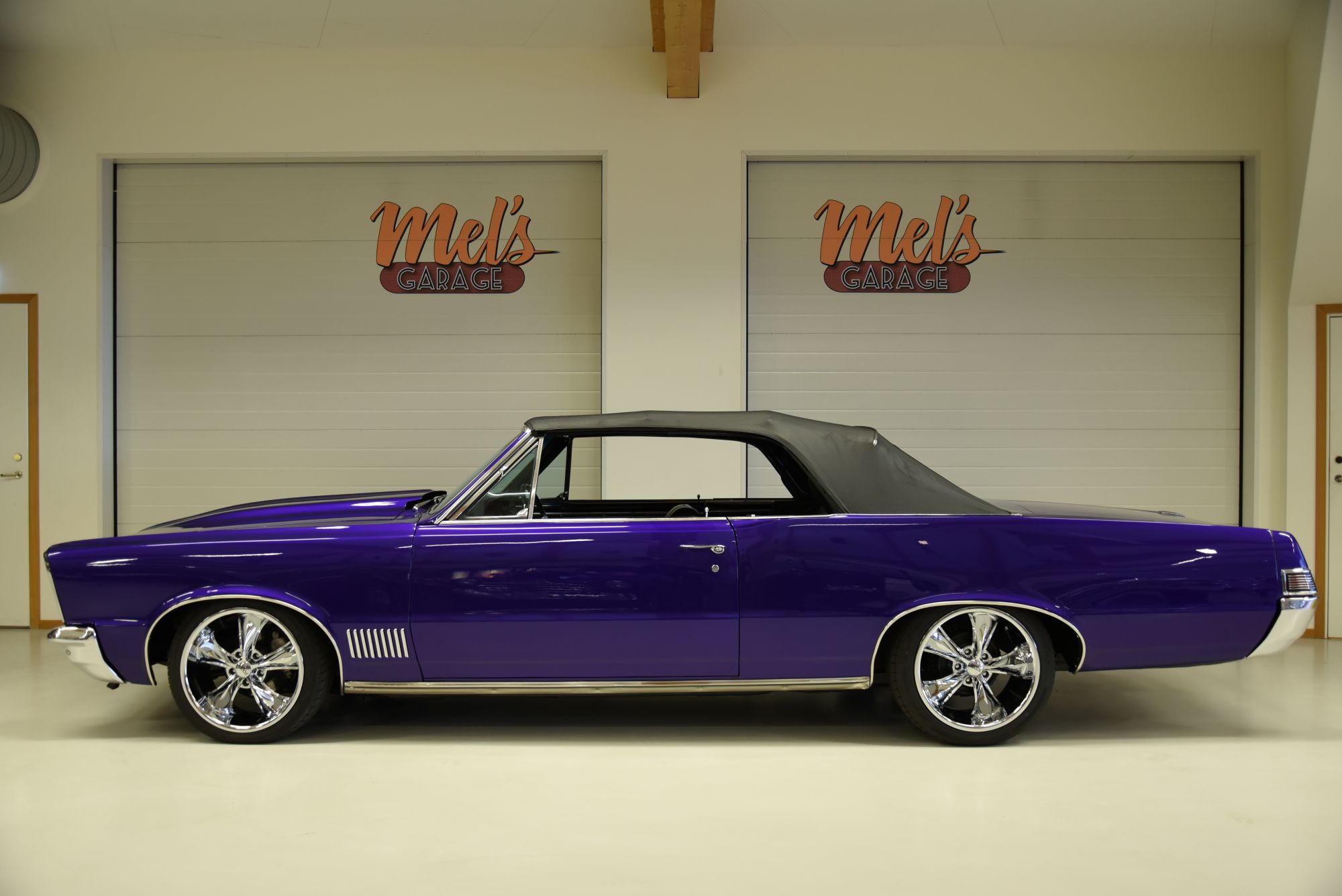 Mel’s Garage specialisten på förmedling av klassiska bilar med konstant stor efterfrågan på varierande modeller i olika prisklasser, All form av finansiering erbjuds, Wasa Kredit med 20% kontant eller My Money, Vi kan leverera eller hämta er bil över hela Sverige i öppen eller heltäckt transport till fördelaktigt pris. Totalt ca 100 bilder på denna bil finns på httpwww.bytbil.comhandlaremels-garage-6856, Denna gång har vi fått in en Pontiac LeMans Cabriolet 1965 i ett allmänt mycket trevligt skick. V8 455 knappt inkörd efter renovering och div justeringar. Holley Sniper EFI insprut. Hyperspark tändning. Nya headers. Ett mycket trevligt motorrum för övrigt. TH 400 automatlåda som även den är renoverad. 12 bultad bakaxel med diff och byggd för ca 600hk. Dubbelt avgassystem med x-pipe som slutar framför bakaxeln. Bromsskivor fram och trummor bak med servo. Styrservo. Rörbärarmar fram med coilover fram och bak. Lackerad i en blålila pearl med 2 extra lager klar lack och våt slipning vilket gav ett riktigt fint resultat. Nya stötfångare fram och bak. Inredning i svart vinyl gjordes ordning 2019 och är i ett härligt bra skick med en smakfull mittkonsol. extra mätare för oljetryck och motortemp. Ordentlig modern stereo. BM golv spak. Elstyrd svart vinylcab i fint skick. Kromade Chip Foose fälgar med 22540-18 fram och 24540-18 bak med ca 7mm mönsterdjup. Detta är en Pontiac cab som verkligen sticker ut med den fina lackeringen och den underbara kulören samt det allmänt fina skicket och en potent motor till det.