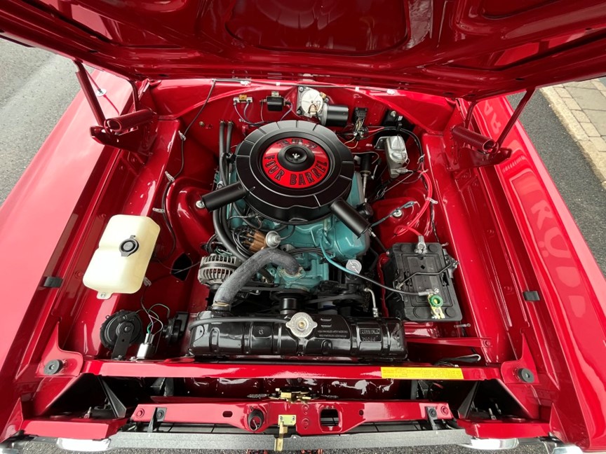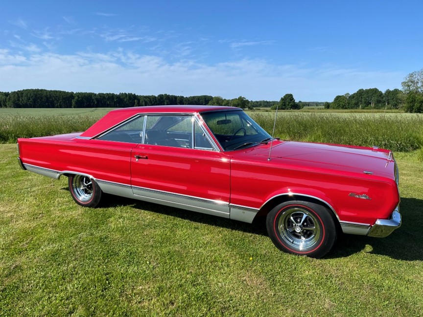 Utrustad med 383-4 på 325 hk. 4 växlad manuell växellåda. Servostyrning. Option Magnum 500 kromade fälgar. Redline däck. Separata framstolar. Golvkonsoll. Säkerhetsbälten. Original FM radio. Dag nattspegel. Safeguard glas. Blinkers indikator på framskärmar. Varningsblinkers.