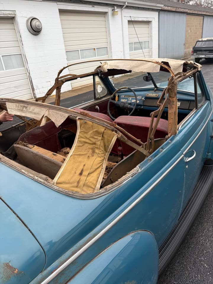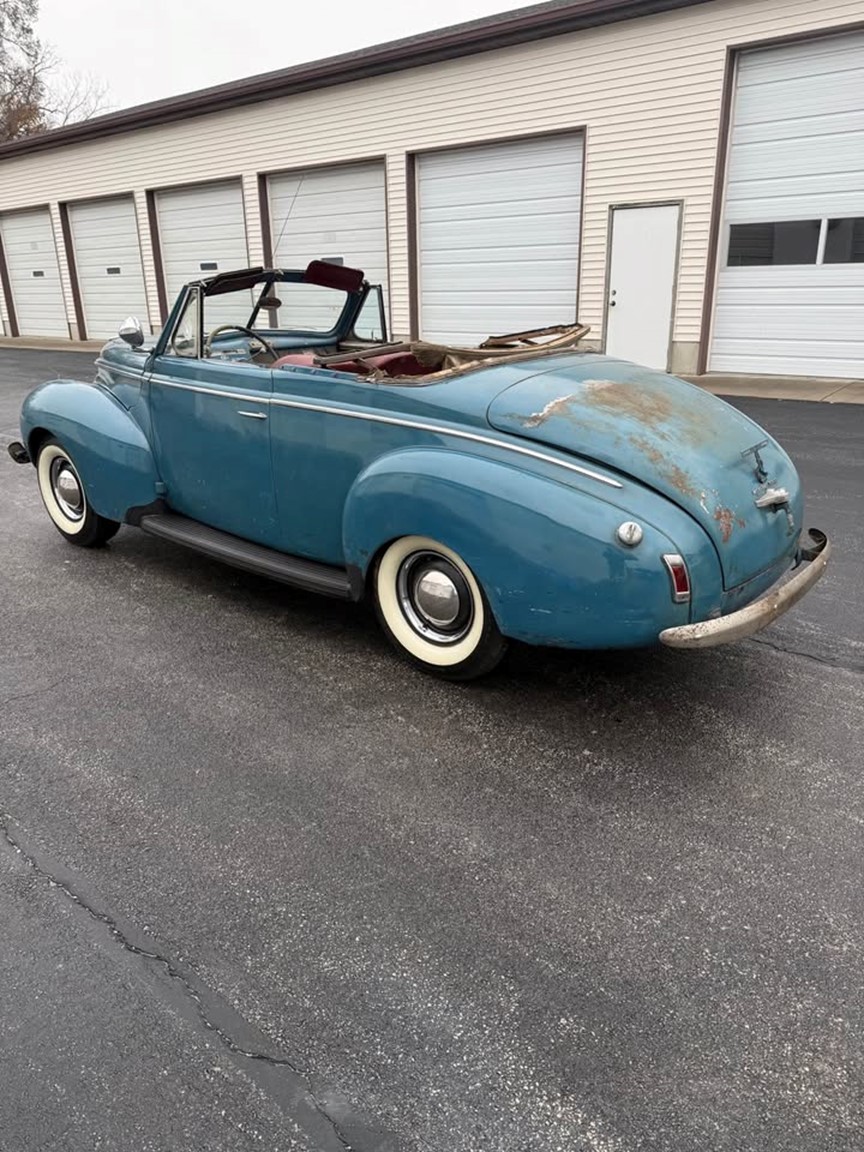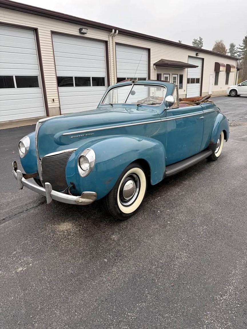 Just out of storage super rare 1940 Mercury Eight Convertible, flathead V-8 with 3 speed manual column shift transmission. Very solid car. Engine turns over by hand and was driven into storage in 1986. Will need brakes done. Car is very solid and complete. Hard to find original just out of 39 year storage. $21,500 P.S.