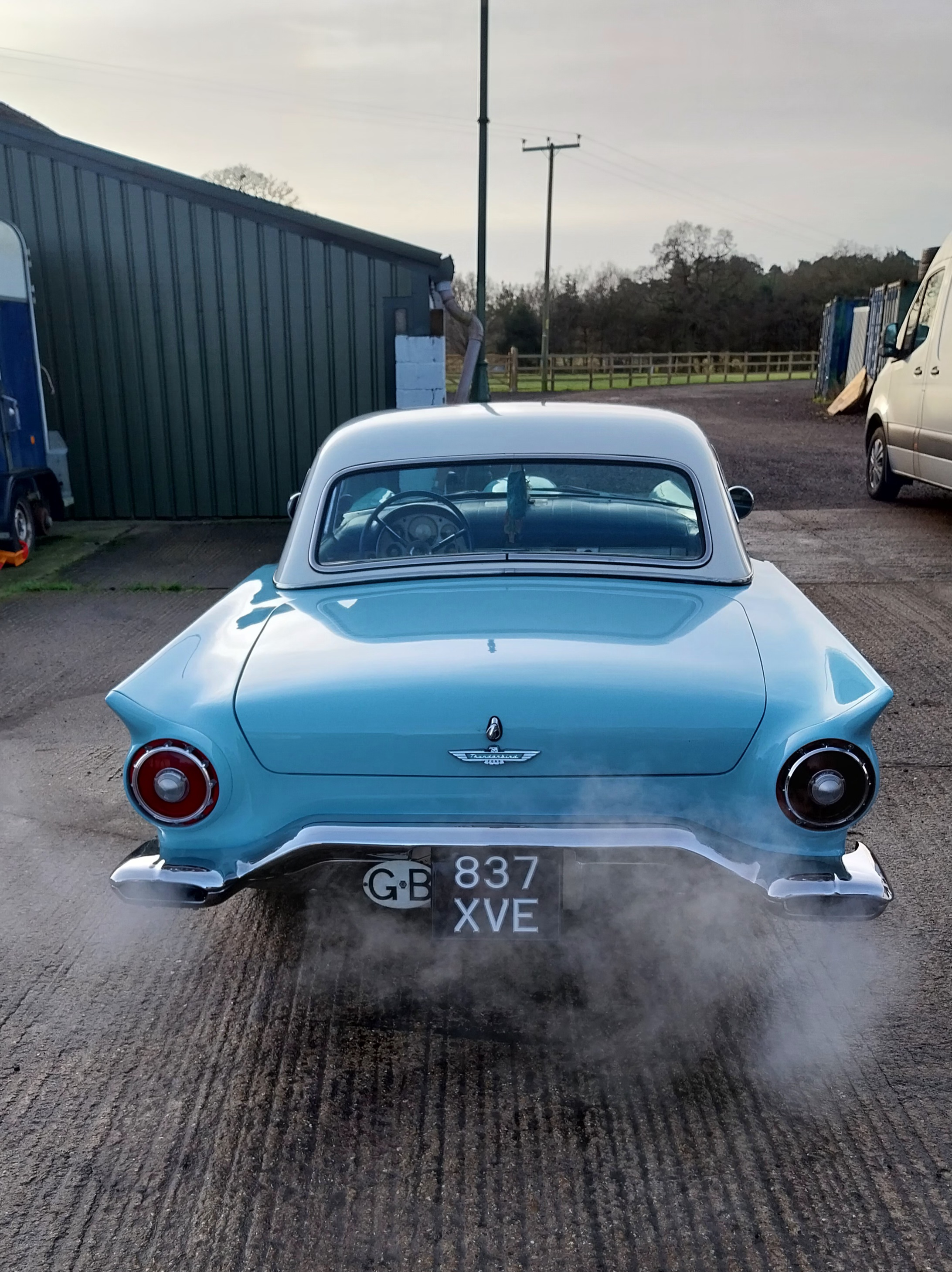 July 1957 Ford Thunderbird in Starmist Blue with a colonial white porthole hardtop. A Dresden and Starmist Blue interior. Very rare Dial-O-Matic power seats, power steering and brakes. Fordomatic auto trans, Electric windows. A white convertible top. 1962 Sports Roadster wire wheels ( like they mostly all do) correct Firestone 2 14 inch whitewall tyres. A 312 V8 245 bhp . All original no modifications. New rear leaf springs and full Fordomatic rebuild here in the UK. She sits and driveshandles very well . Full history from day one! USAUK . Car is in London Area UK. Please contact for any further information. Many thanks for interest.