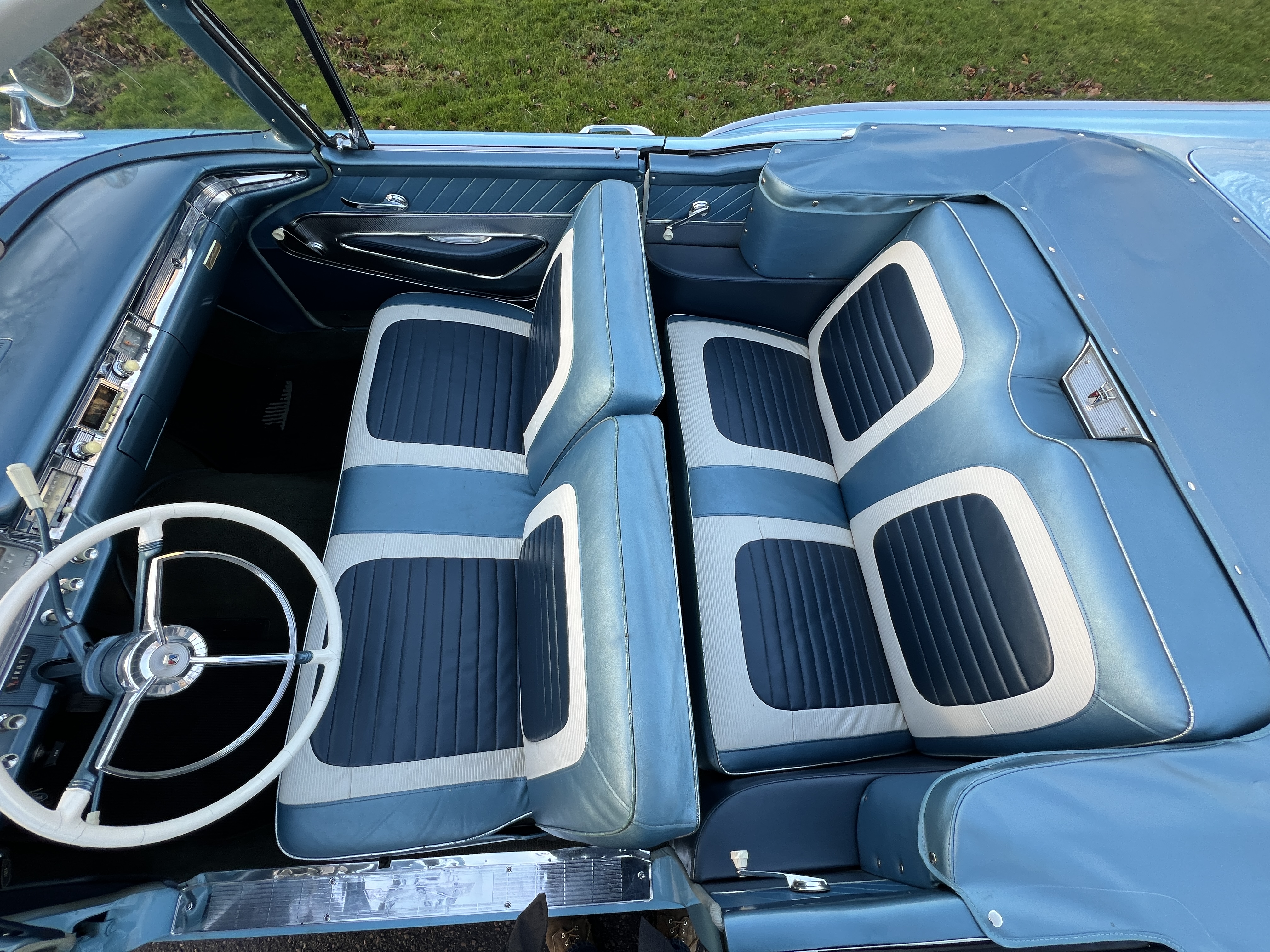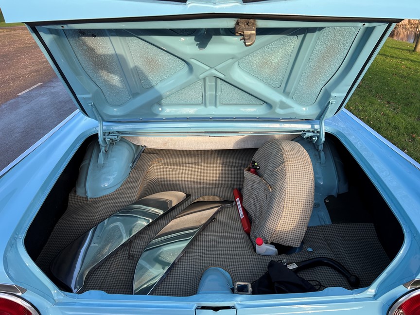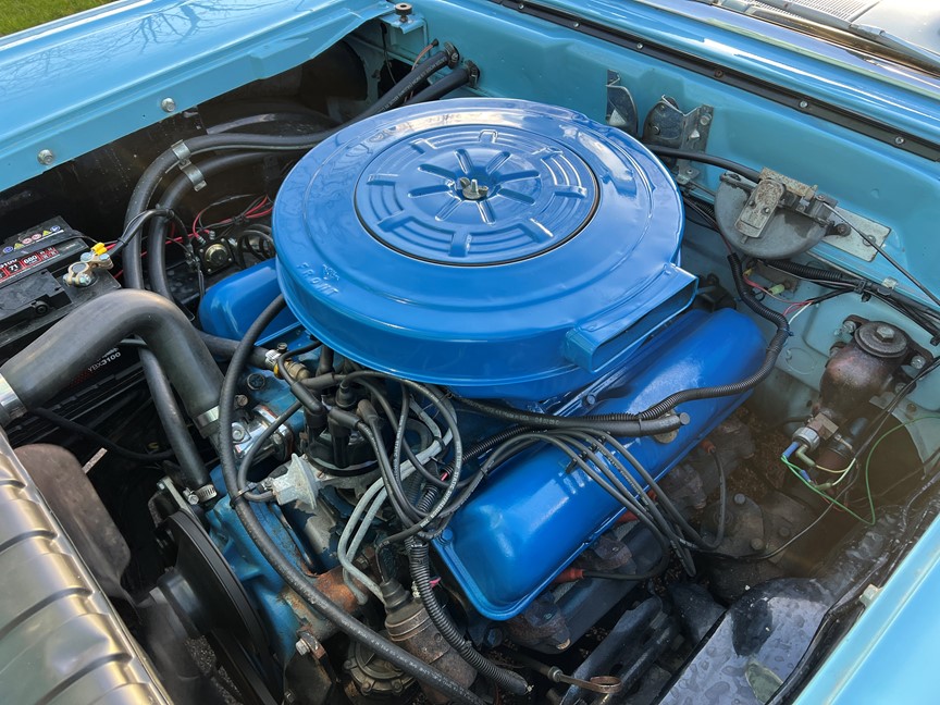 En seriöst utförd, äldre helrenovering, som fortfarande håller hög klass. Sparsamt körd till utställningar och träffar. Den har förutom styr- och bromsservo även tacknämligt begåvats med option-motorn Thunderbird Special 352 4V (H code) på 300 hästar, kopplad till en Ford-O-Matic samt bakaxelutväxling på landsvägsvänliga 2.91. Den är en fröjd att köra och går mjukt och stabilt med fin sång från de dubbla piporna. Den läckra pastellblåa originalkulören heter Wedgewood Blue och gifter sig fint med den stiliga inredningen. En välljudande RetroSound-stereo är monterad och USB-stickan är laddad med sköna 50-talslåtar. Bilen är registrerad med avtagbart drag och det medföljer kromade fenderskirts. Den här utsökta pralinen vill du inte missa... ring mig direkt på 0703158080 och se till att den blir din!..