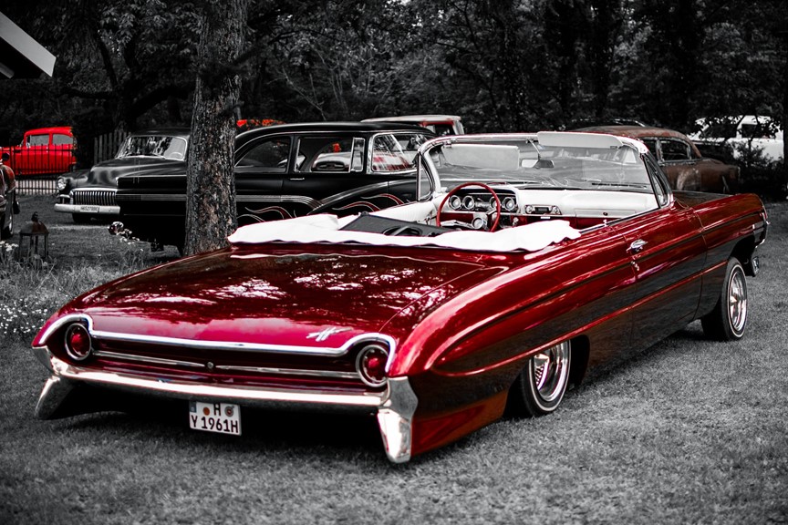 Air Ride from „Grinds“ , original Daytons and candy apple red paintjob.