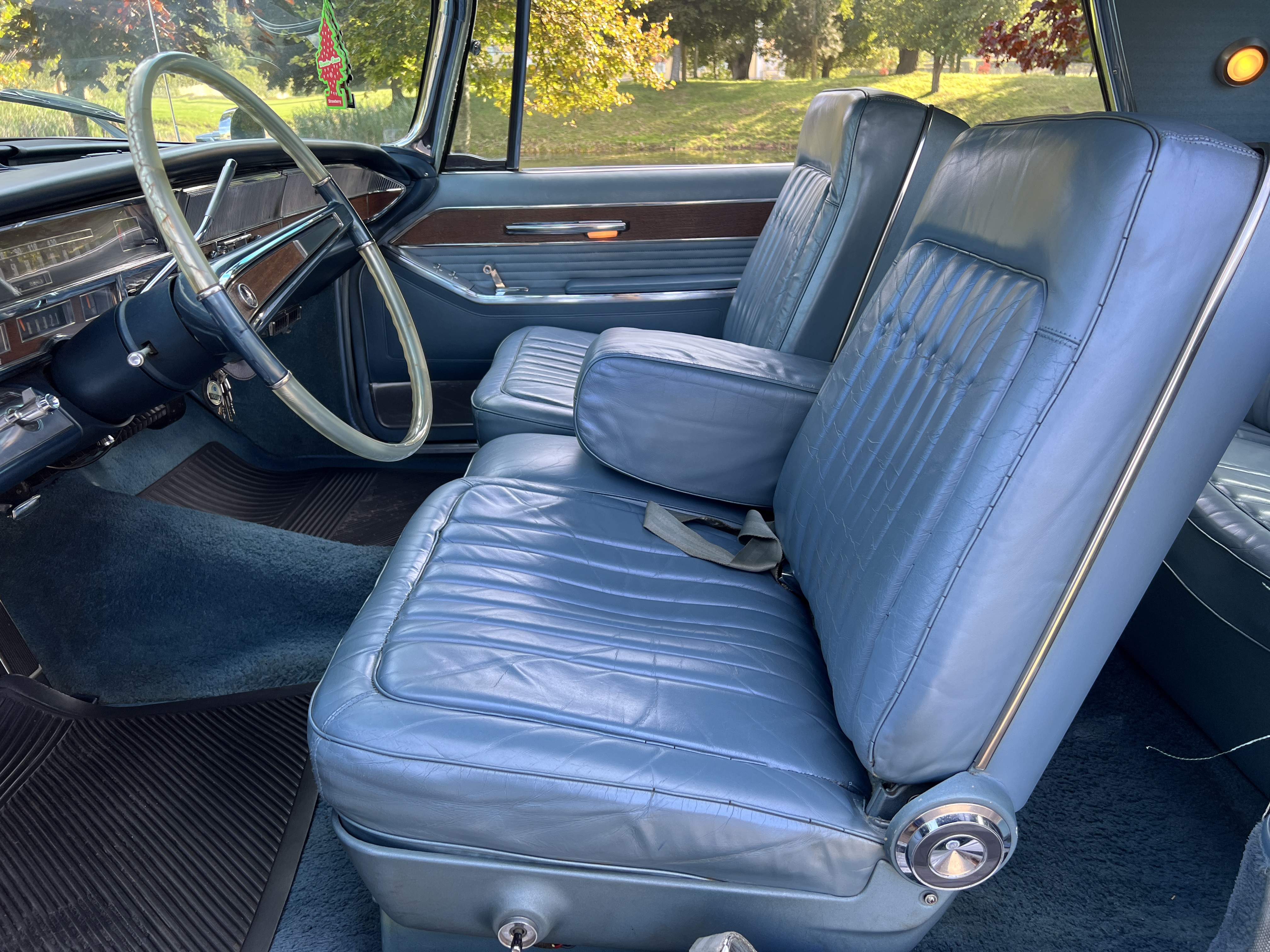 En underbar och ovanlig lyxkryssare i ett härligt originalskick. Den här top-of-the-line-modellen tillverkades i futtiga 3974 ex och syns sällan till, framförallt inte i ett så här oförstört solitt skick. Bilen har bara rullat 9365 svenska mil och det märks. Lacken har förvisso lite små spår av ålder men inget som förtar den fina helheten. Kromet är blankt och fint. Inredningen är kanonfin. Den biffiga 413-motorn levererar rejält med sina 340 ardenners och Torque-Fliten växlar smutt. Den är ett under av komfort och har en omisskänslig kassaskåpskänsla. Givetvis är den besiktnings- och skattebefriad. Missa den inte... ring mig direkt på 0703158080 och boka en skön provtur!..