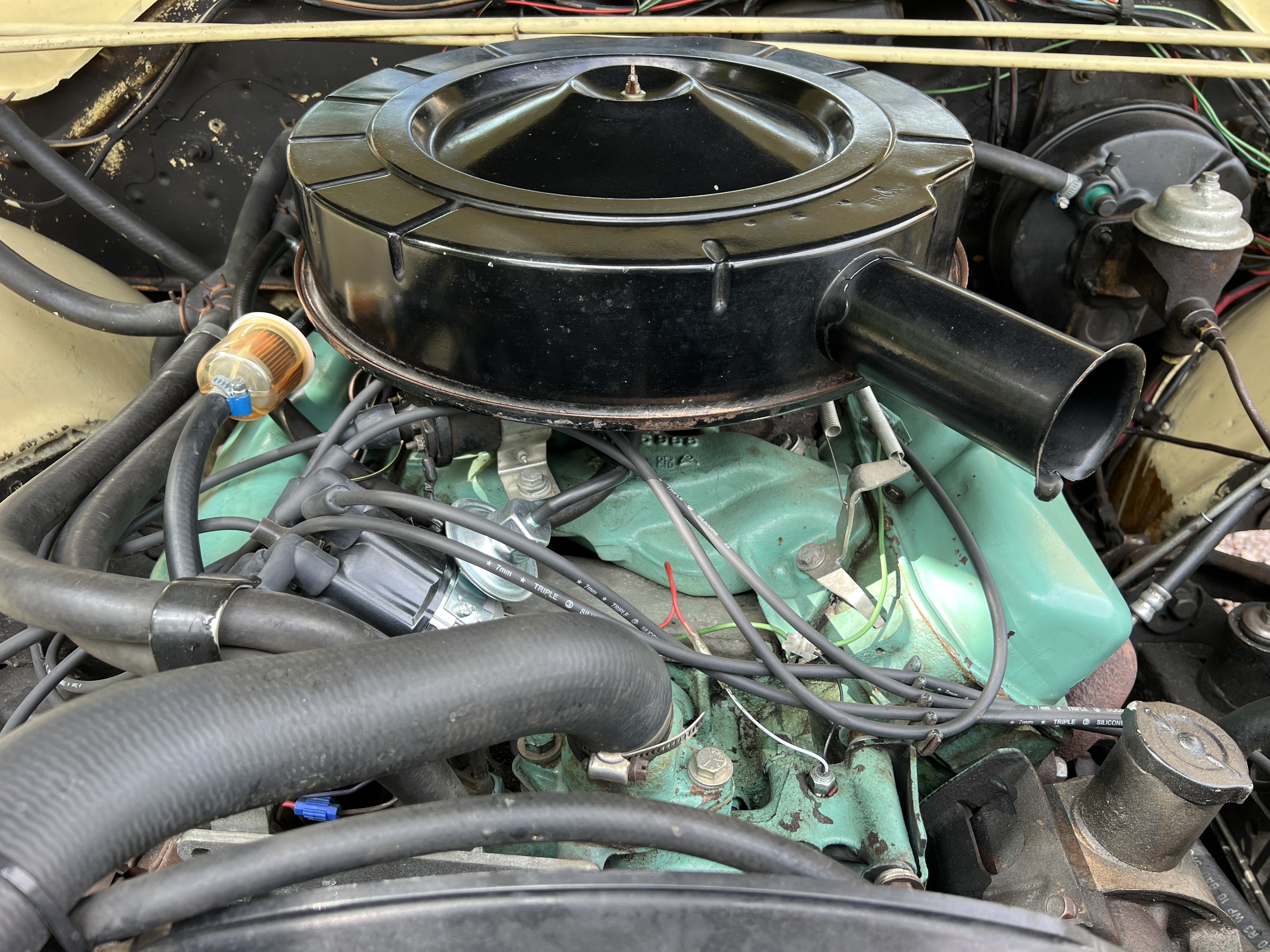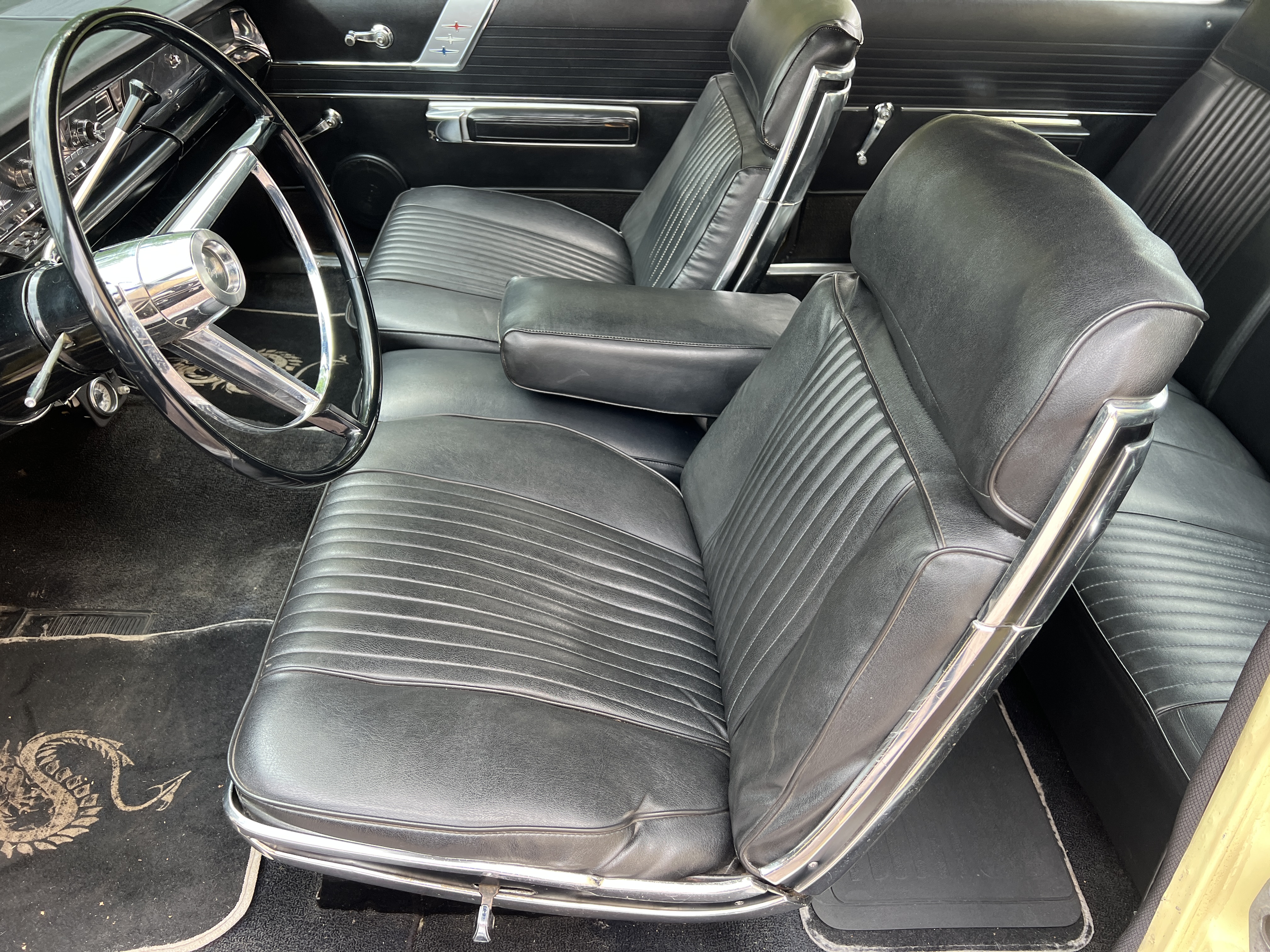 Den här sportiga Moparn är utrustad med en 383BB på 325 hästar och en treväxlad Torque Flite-automat. Bägge uppför sig klanderfritt och det mullrar härligt från de dubbla piporna. Kromet och lacken i Daffodil Yellow är original från fabrik. Lacken har förvisso spår av ålder som slitage, genompoleringar och några bättringar men den bidrar till bilens sympatiska originalkänsla. Den sportiga originalinredningen är hel och fin. Under instrumentbrädan sitter det en mediacentral med CDDVDSDUSBGPS. Det sitter även Hi-Jackers bak med reglering inifrån kupén så du kan välja stance på bilen. Besiktnings- och skattebefriad. Varsågod och ring mig direkt på 0703158080 och se till att den blir din!