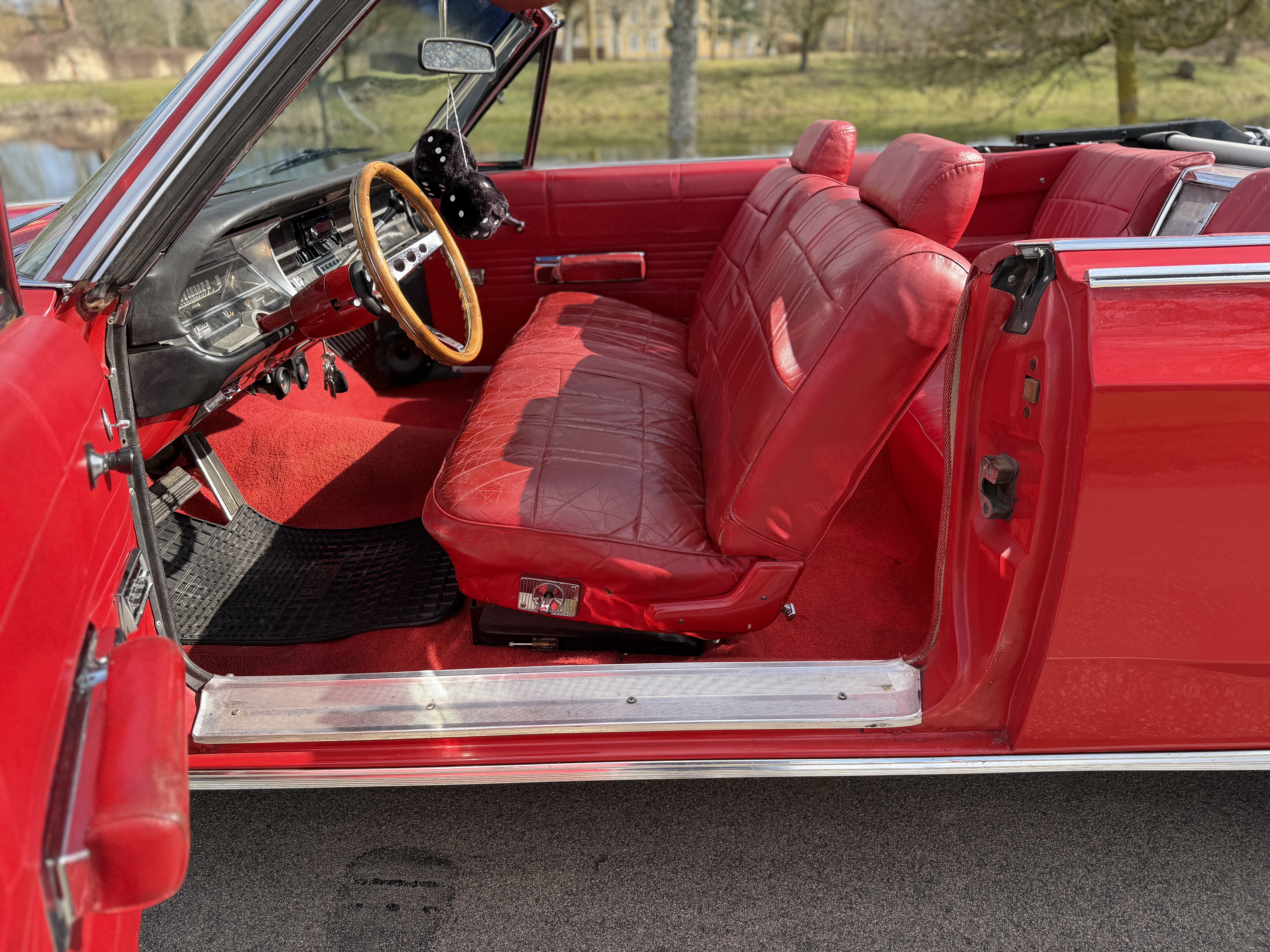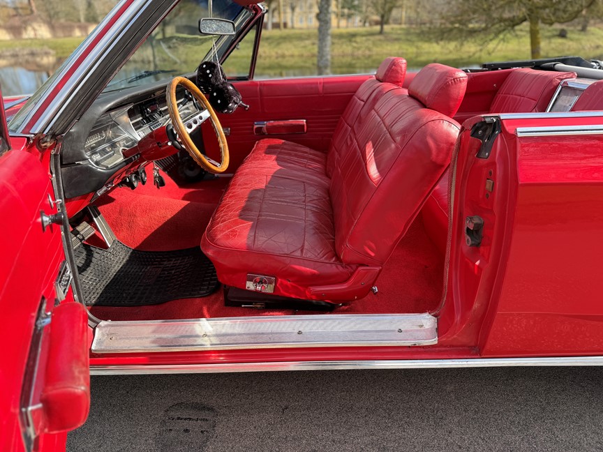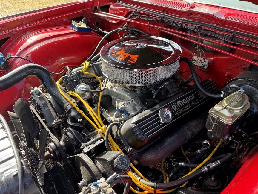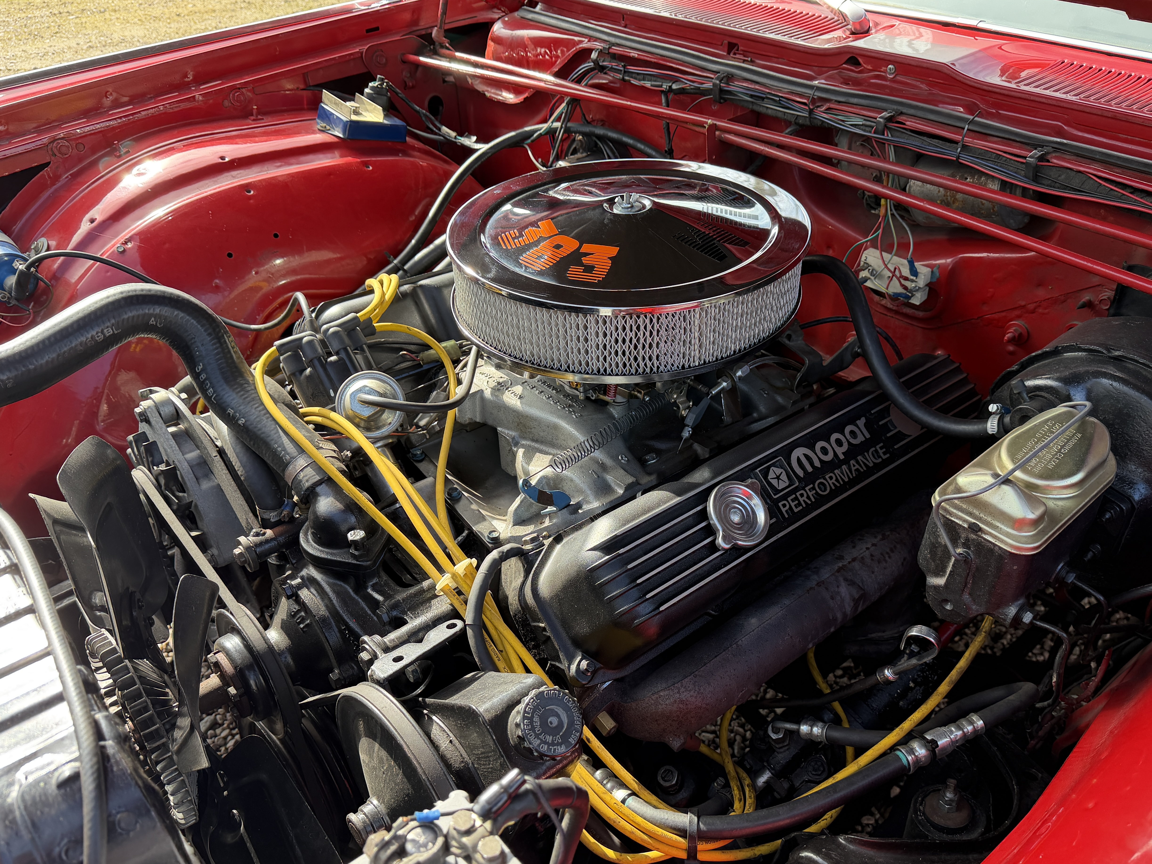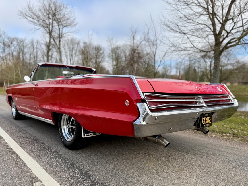 En tuff och stilig option-stinn Special Order-bil utrustad med bl a skinninredning, elhissar och -säte, turn signal fender indicators, skivbromsar fram OCH inte minst en mycket potent 383 Big Block med en 4-portad Holley 650CFM. Den lär ha runt 350 villiga och ger den här cruisern muskelbilskänsla, både med sin punch och ljudet från det luftiga dubbla avgassystemet. Enligt tidigare ägare är 727 automaten renoverad och preppad och turbinen upplevs ha en högre stall speed. Bakaxeln är en optional diffad 8 34 Sure-Grip med moderat 3.231 utväxling. Det fina skicket ser du på bilderna och bilen går lika bra som den ser ut. Stancen är klockren med nya AR Magnum´s och BF´s. Det sitter en enkel CDUSBAUX-stereo monterad. Givetvis är bilen besiktnings- och skattebefriad. Är du en Mopar-fantast skall du inte missa den här unika och potenta cruisern, ring mig direkt på 0703158080 och klipp den!..