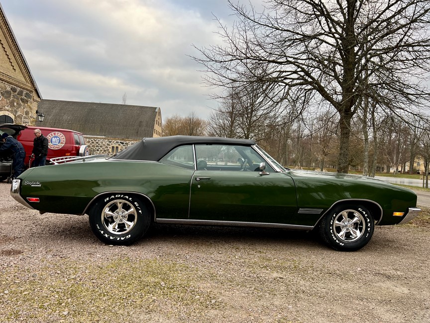 Här erbjuds du ett rullande tidsdokument. Den kom hit från soliga Florida som 10-åring varvid den garageförvarades till 2002 då den den ställdes på. Den har därefter rullat sparsamt, med tre mogna ägare, varav den senaste ägde den 15 år. Den är helt fri från rost, lagningar eller bättringar. Fabrikslacken i Verdemist Green metallic har en del solpatina (oxid) på vertikala ytor men ger ett gott helhetsintryck. Krom, inredning och cab är i mycket fint skick och det ser originalmässigt bra ut i motor- och bagagerum samt undertill. Hos oss har den begåvats med nya gummilister samt nya fälgar och däck... fetare bak för sportig stance, såklart. En cool detalj är optional Luggage Rack på bagageluckan. Den är riktigt pigg och trevlig att köra med bra kraft i den 260 hästar starka 4V 350an och 350-lådan växlar smutt. Givetvis är den besiktnings- och skattebefriad. Bättre bilder kommer vid bättre väder, men vänta inte på det... ring mig direkt på 0703158080 och boka en visning!..