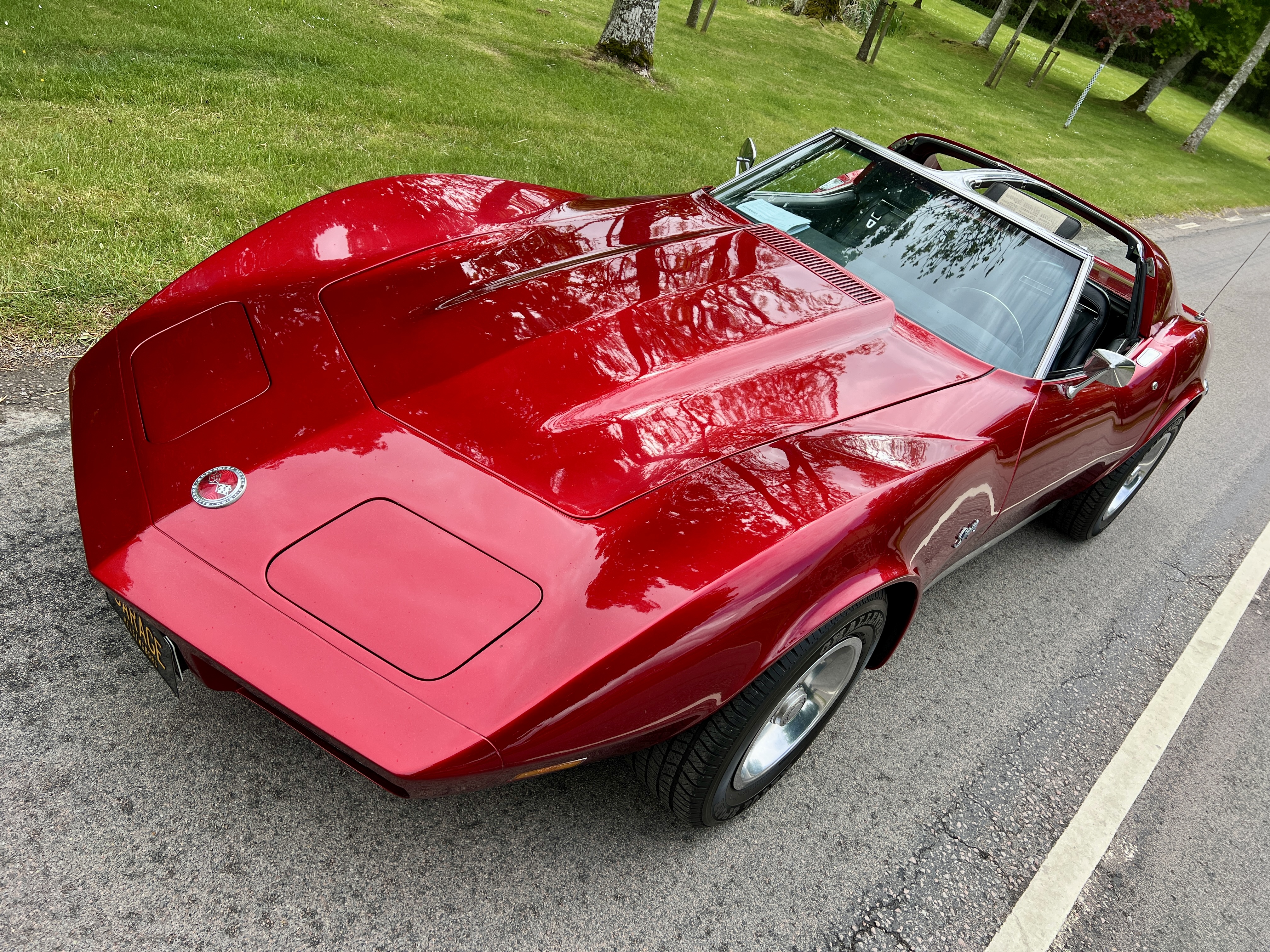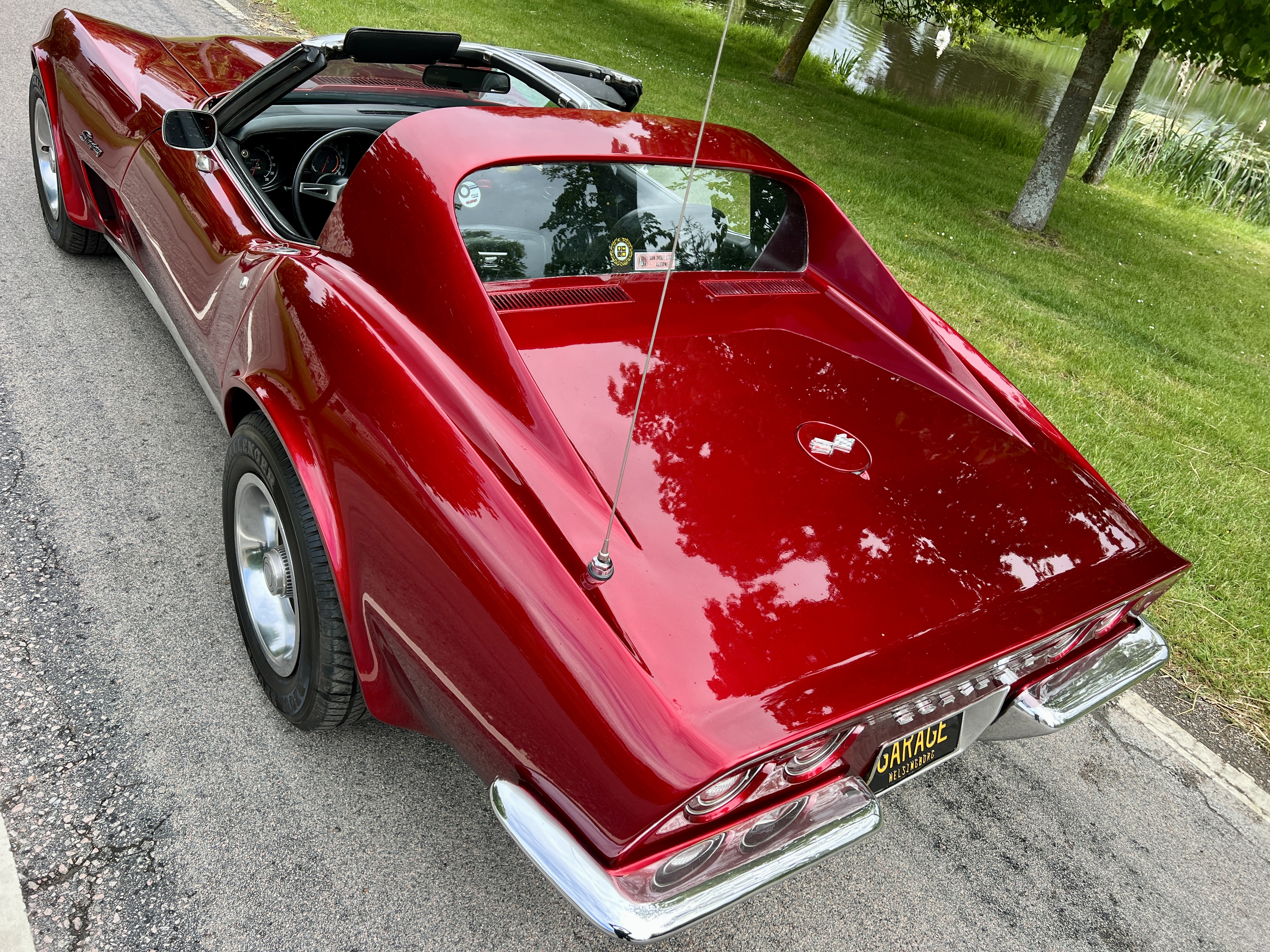 Wow-faktorn är skyhög på denna gnistrande candyröda karamellen! Björn hade ägt den i närmare 22 år och ägaren före honom i närmare 16 år. Han i sin tur hade köpt den av förste ägaren i soliga San Diego 1987. Nu har du möjligheten att bli den fjärde lycklige ägaren. Det fina skicket ser du på bilderna. Motorn är helt genomgången med nya lager, ringar, etc och eftersom den inte ens hade vändkanter behövde den inte borras. I samband med det fick den några uppgraderingar som moddade toppar, insug, steg ett kam samt headers. Detta gjordes för närmare 10 år sedan men bilen har bara rullat ett par hundra mil sedan dess. Det är riktigt bra klipp i 350n som gissningsvis numera huserar runt 250-270 hästar. Det tillsammans med den 4-växlade manuella lådan och ett härligt ryt ger tonvis av körglädje! Missa den inte... ring mig direkt på 0703158080 och se till att den blir din!..