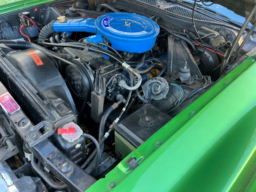 Här kommer en härlig Arizona-född Cougar cab i 1973-års ballaste kulör Ivy Glamour Green Metallic, stiligt parad med Avocado interiör. Den är även begåvad med option-motorn 351 Cleveland samt C6 automat. Bakaxelutväxlingen är 2, ekonomiskt och landsvägsvänligt. Bilen går och låter fint. Besiktnings- och skattebefriad. Ring mig direkt på 0703158080 och se till att du blir näste lycklige ägare!..