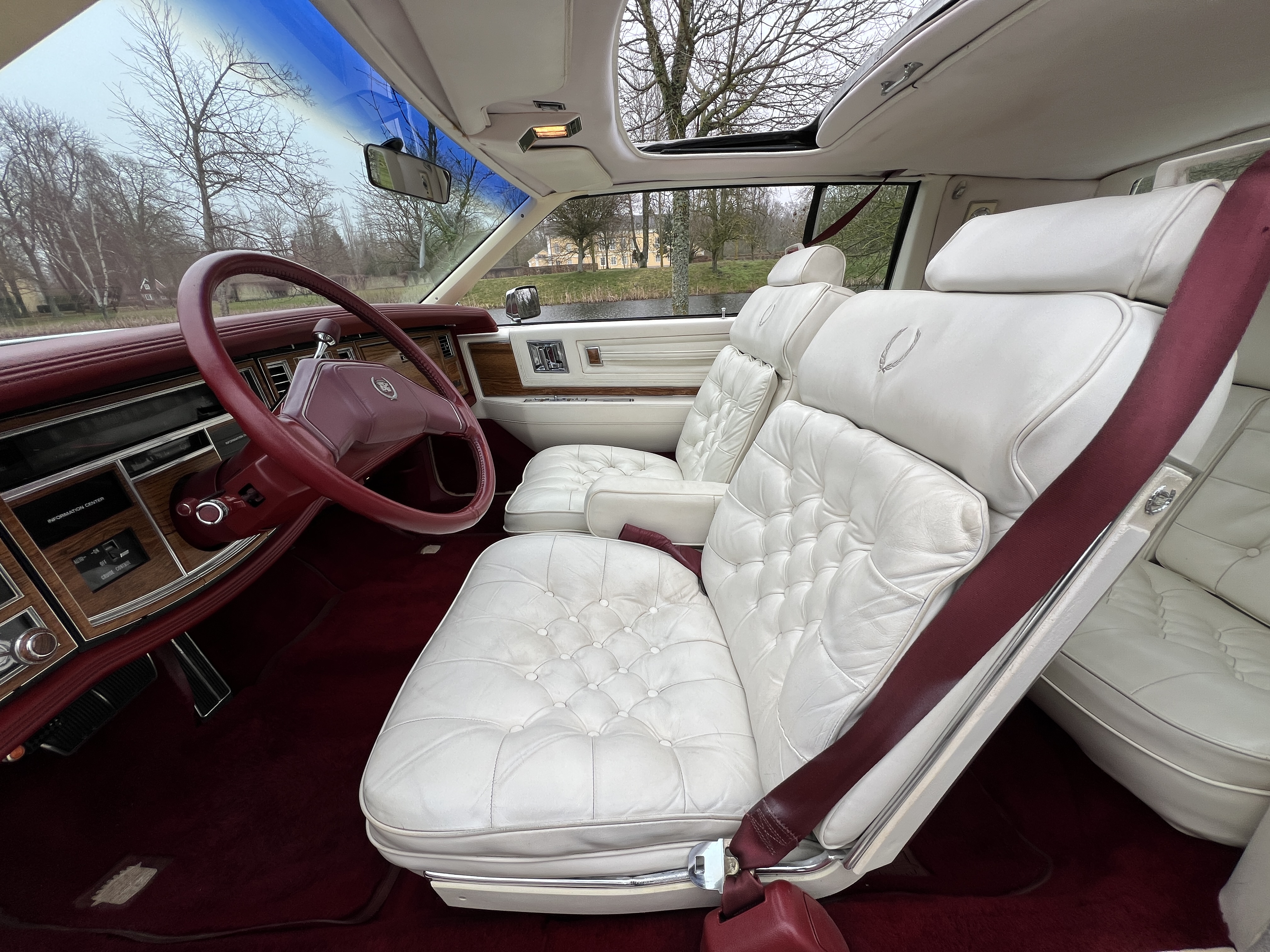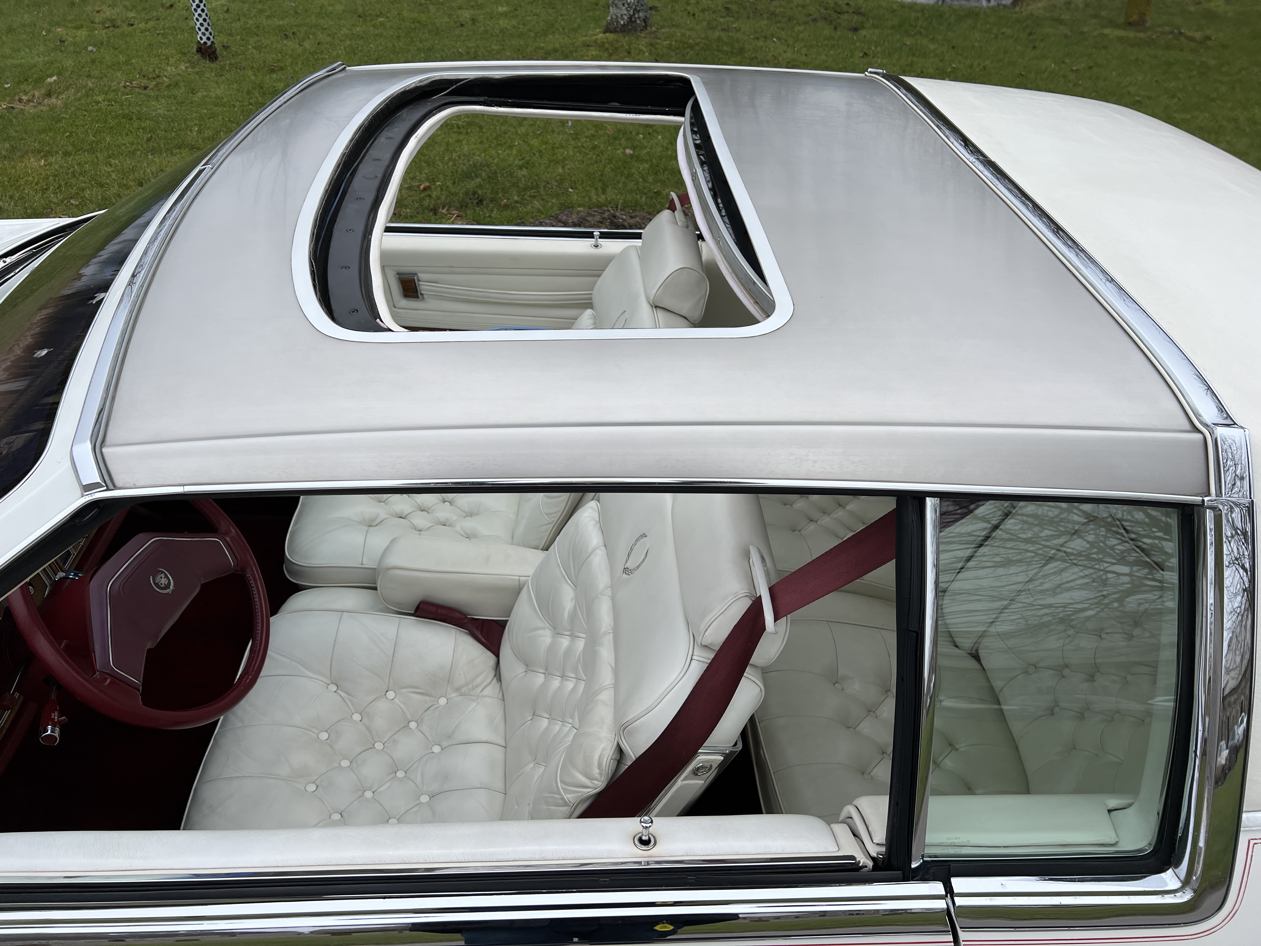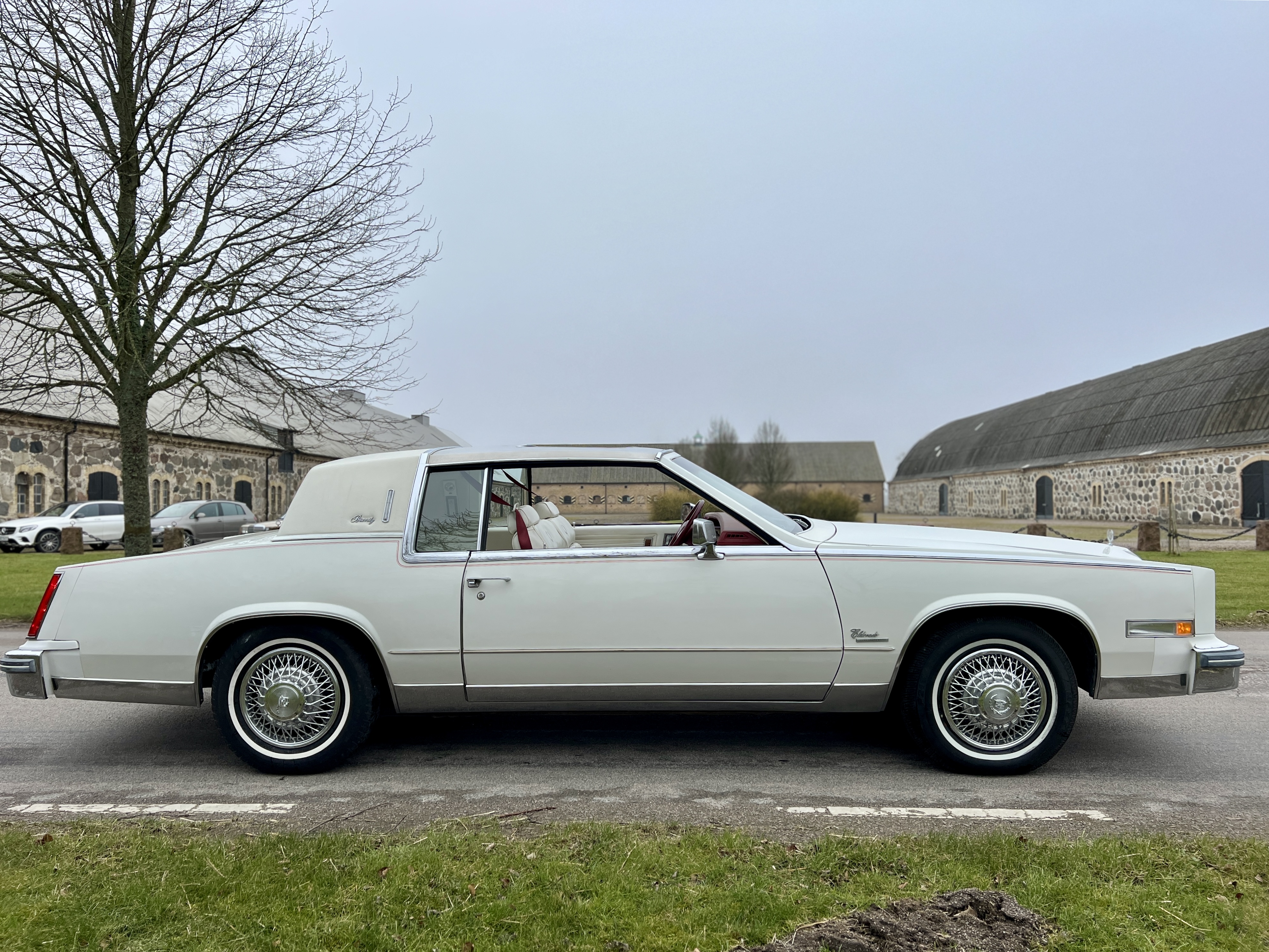 Den här ovanliga Biarritzen har haft en brukare från att den importerades från Kalifornien 2011 och nu kan du bli näste lycklige ägare. Biarritzen var nästan 3000 dollar dyrare än en vanlig Eldorado. För pengarna fick man bl a en fläskigare skinninredning, de speciella längsgående listerna samt, inte minst, det coola taket i borstat rostfritt stål (ett arv från 57-58 Brougham-modellerna) samt ett Landau vinyltak med Opera Lights. Förutom detta adderade beställaren ett Astro Roof, en glastaklucka, för ytterligare $1085. Hur många som beställde den dyra Biarritzen av totalproduktion på 52683 ex har jag inte lyckats snoka fram men vissa sidor nämner 8-10%. Bilen har bara rullat 12430 svenska mil och det fina skicket ser du på bilderna. Den är en fröjd att köra med sin 170 hästars 5,7 liters V8 och automat. Passa på att unna dig denna prisvärda top-of-the-line-cruisern och ring mig direkt på 0703158080 och boka en skön provtur!..