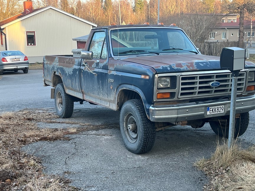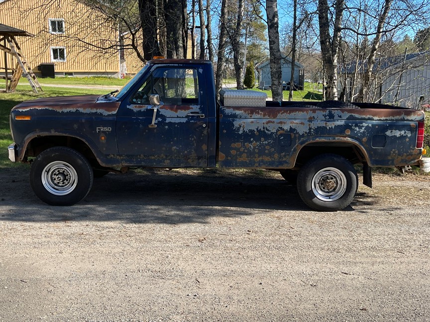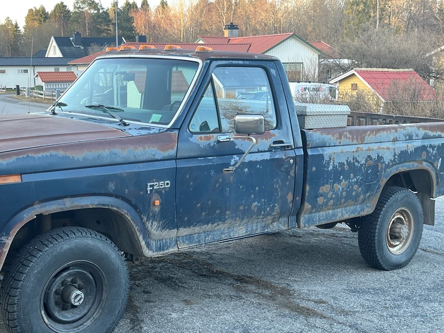 Har en 1986 Ford f250 v8 diesel med 4vxl manuell som jag vill sälja eller bytes muskelbil. Har all dokumentation sen den var nysåld i Sverige och bilen är extremt påkostad trots att det kanske inte syns, men en väldigt bra bil att fortsätta bygga på, skickar mer bilder på förfrågan samt mer information. Bilen är b-reggad med 905kg i lastvikt och dragvikten är 3t på e-kort