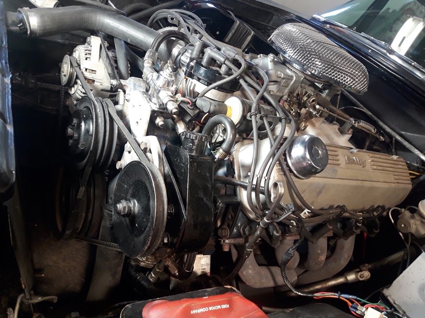 Sänkt runtom. Kränghämmare, grövre fjädring, monoleaf, uppstyvad, Gasdämpare runtom, Gamla Americanracing fälgar. Cavalier kuggstångsstyrning. Alla bussningar och div leder bytta. Ny kyl m elfläktar. Sep kyl till lådan. Ny tank. ny inredning i skinn och nytillverkad cabrioletställning och canvastyg. Allt glas bytt till nytt. Nya däck. Dragkrok regad för 1500kg