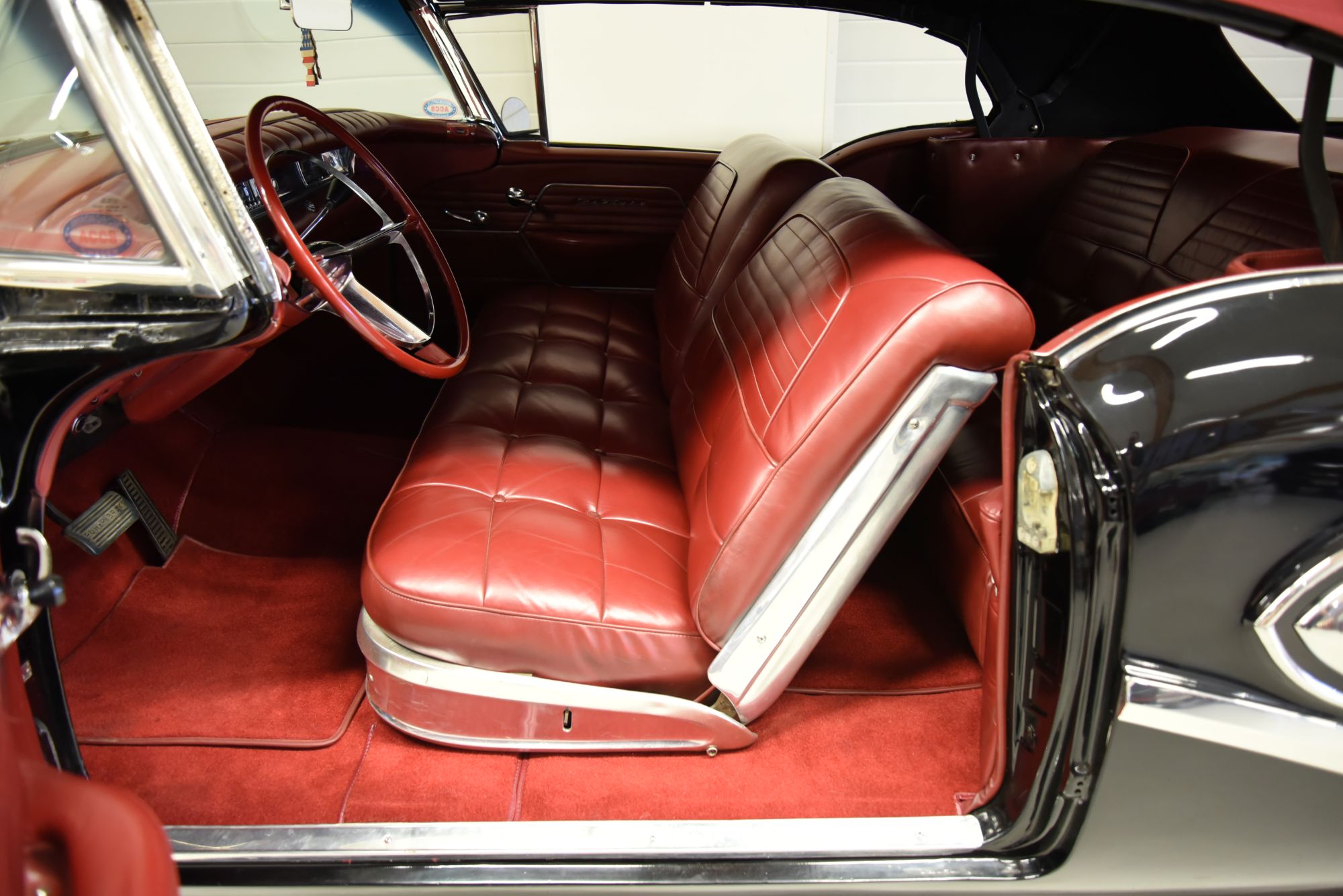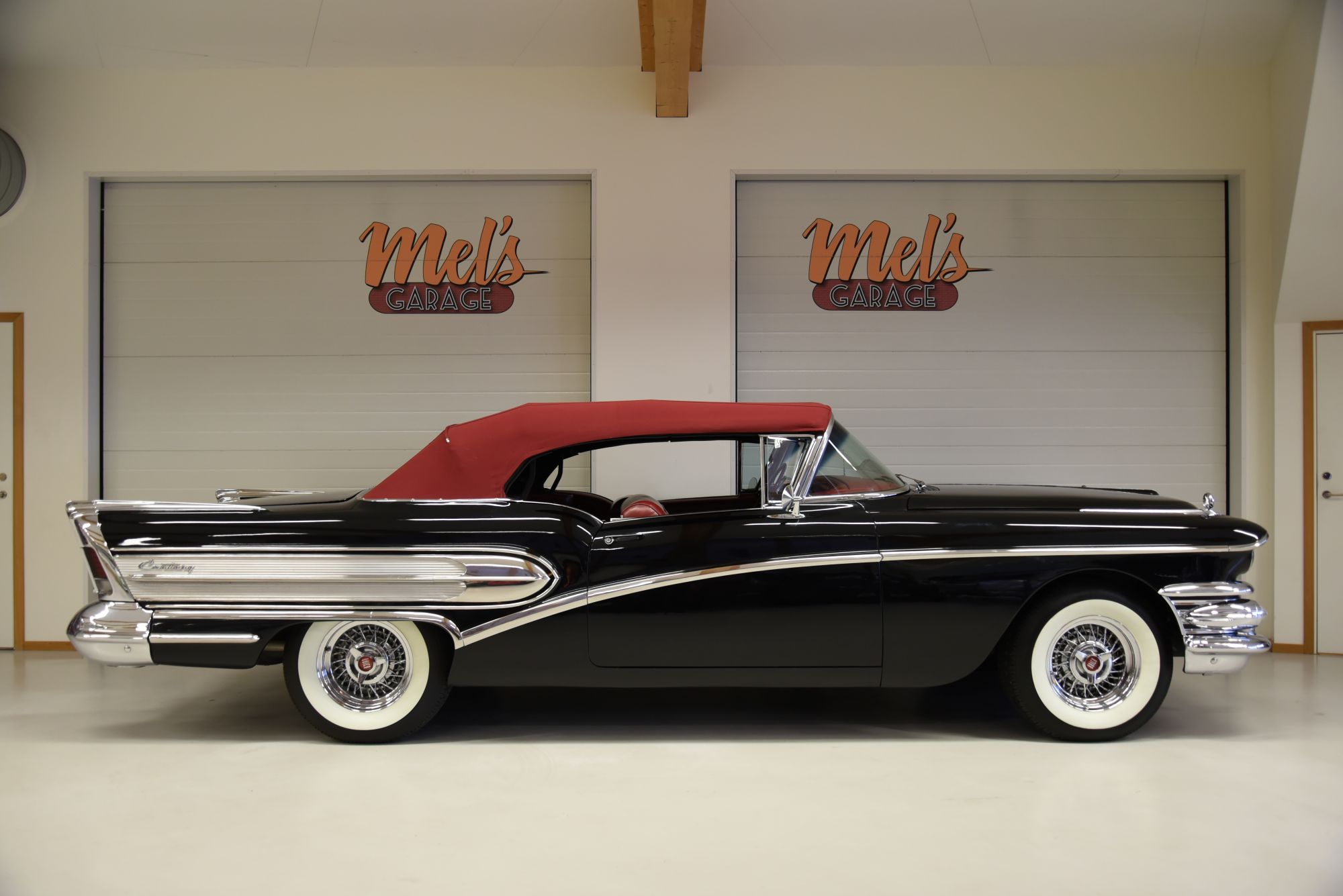 Buick Century Cabriolet 1958-Modell 66c. En ovanlig modell som har genomgått löpande renovering och är idag i ett riktigt bra skick. V8 364 med en Edelbrock förgasare. Dynaflow automatlåda med twinturbin för en behaglig växling. Original bakaxel. Servostyrning. Dubbelt avgassystem. Trumbromsar fram och bak med servo. Elstyrda fönsterhissar. Elstyrd tyg Cab i ett mycket fint skick och en renoverad Cab ställning. Inredning i rött skinn som håller ett allmänt mycket fint skick rakt igenom. Lackerad för många år sedan i vad vi tror original kulören Carlsbad Black som fortfarande håller ett fint skick. Kromet runt bilen är även det i ett allmänt mycket fint skick. Ekerfälgar med White Wall däck 23575-15 och ca 7mm mönsterdjup. Söker du en riktig glidar bil så titta lite extra på denna. Finns ca 15st av dessa i Sverige så är en ovanlig modell som uppskattas rejält på träffar. Bilen känns stabil på vägen och fungerar utmärkt i drivlina med en hög komfortkänsla. Besiktigad 2017-10-10 och nu besiktningsbefriad.