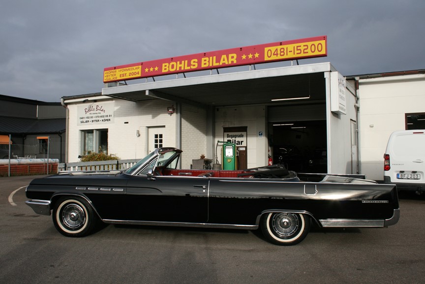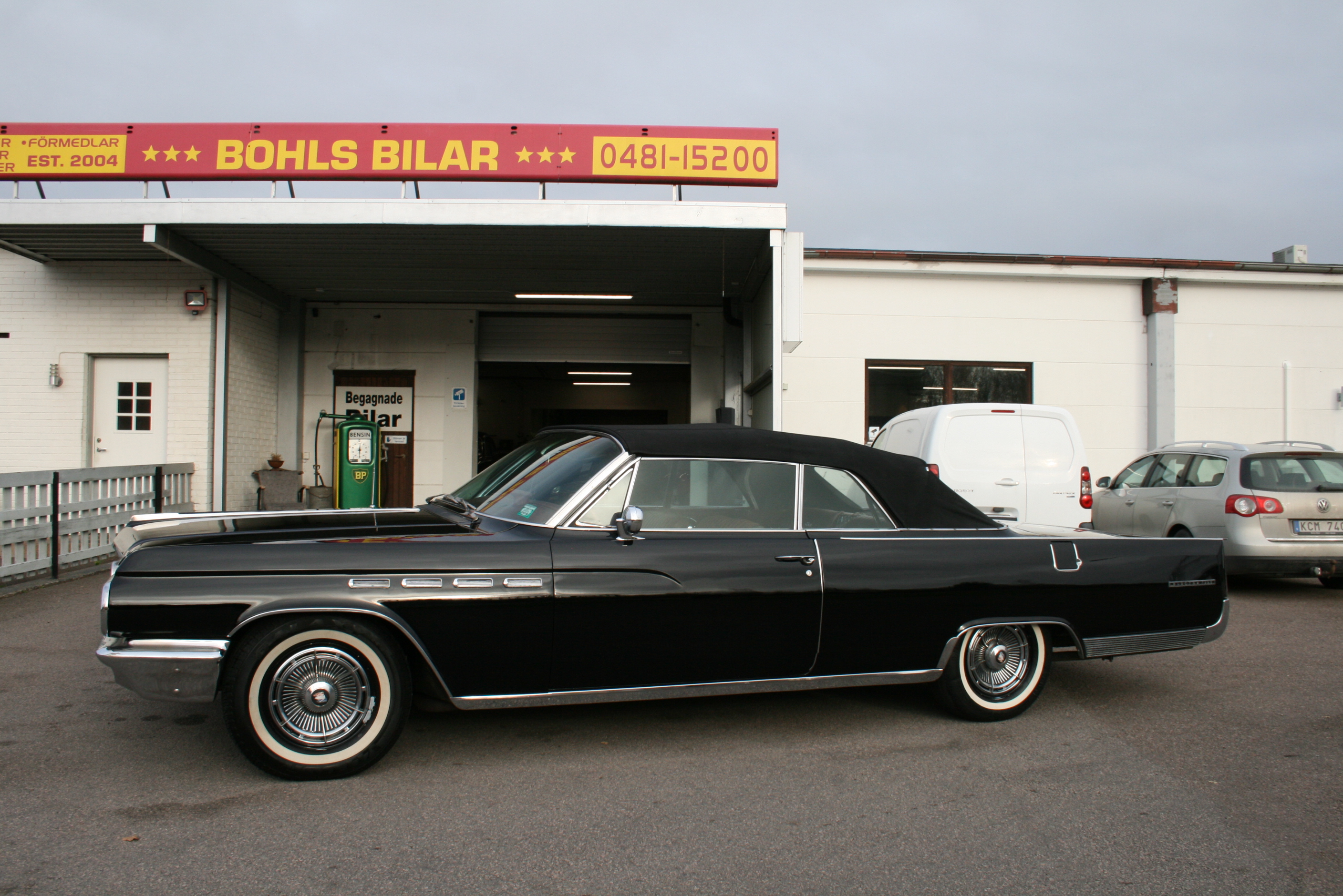 Buick Electra 225 Convertible 1963 årsmodell, en fullsize Deuce And A Quarter cabbe med 401 Nailhead V8 och automat, välutrustad kärra med både styr och bromsservo, elcab, elhissar, en snygg svart lackering på en rak och fin kaross, äldre inredning förmodligen original, lite nött på sina ställen men i sin helhet ok, en ganska ovanlig modell som man inte ser så ofta på träffarna, Vi ordnar finans och ev transport, Kontakta oss alltid för att boka en tid för visning, dels för att försäkra dig om att bilen inte är såld men även för att säkerställa att vi är på plats. Vi försöker alltid lösa visning och leverans när det passar dig även om du inte har möjlighet att komma till oss under ordinarie kontorstider, se fler bilder och videos på våran FB-sida, Bohls Bilar AB Säljer Byter Köper och Förmedlar din USA-bil samt classic fordon i Nybro sedan 2004, Välkomna önskar Joakim med personal!