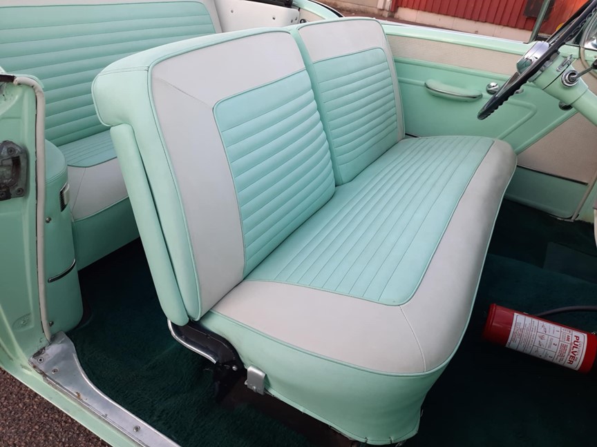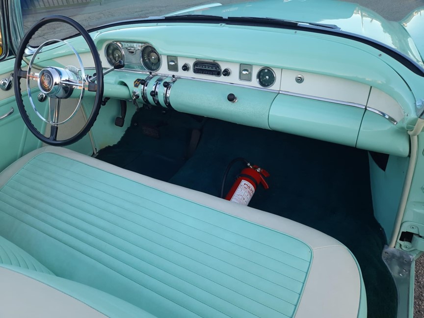 NYBES UA ! Nyservad, Nytt Krom, Ny Inredning, Renoverad Bakaxel och Motor samt Renov Aut Låda av Gante, Diagonal Whitewalls Däck, Cabskydd, El Cab, 322 V8 Nailhead, Aut...Svensksåld Såld Ny till Ägaren på Metronome Records i Stockholm 1954...Bilen Lackad Mintgrön med Mintgrön och Vit Inredning...