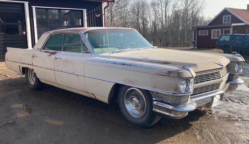 -64 Cadillac Sedan de ville 4 window 4dr Hardtop Ny importerad Frisk originalbil från torra Montana 429 och th400 låda ej fungerande motorn är fast Elhissar Sixway-seat Tiltratt Foglights C-lås AC Helljusavbländning Fint original krom Alla papper finns för registrering Finans kan ordnas med MyMoney Hemtransport kan arrangeras till din dörr fler bilder kan mailas