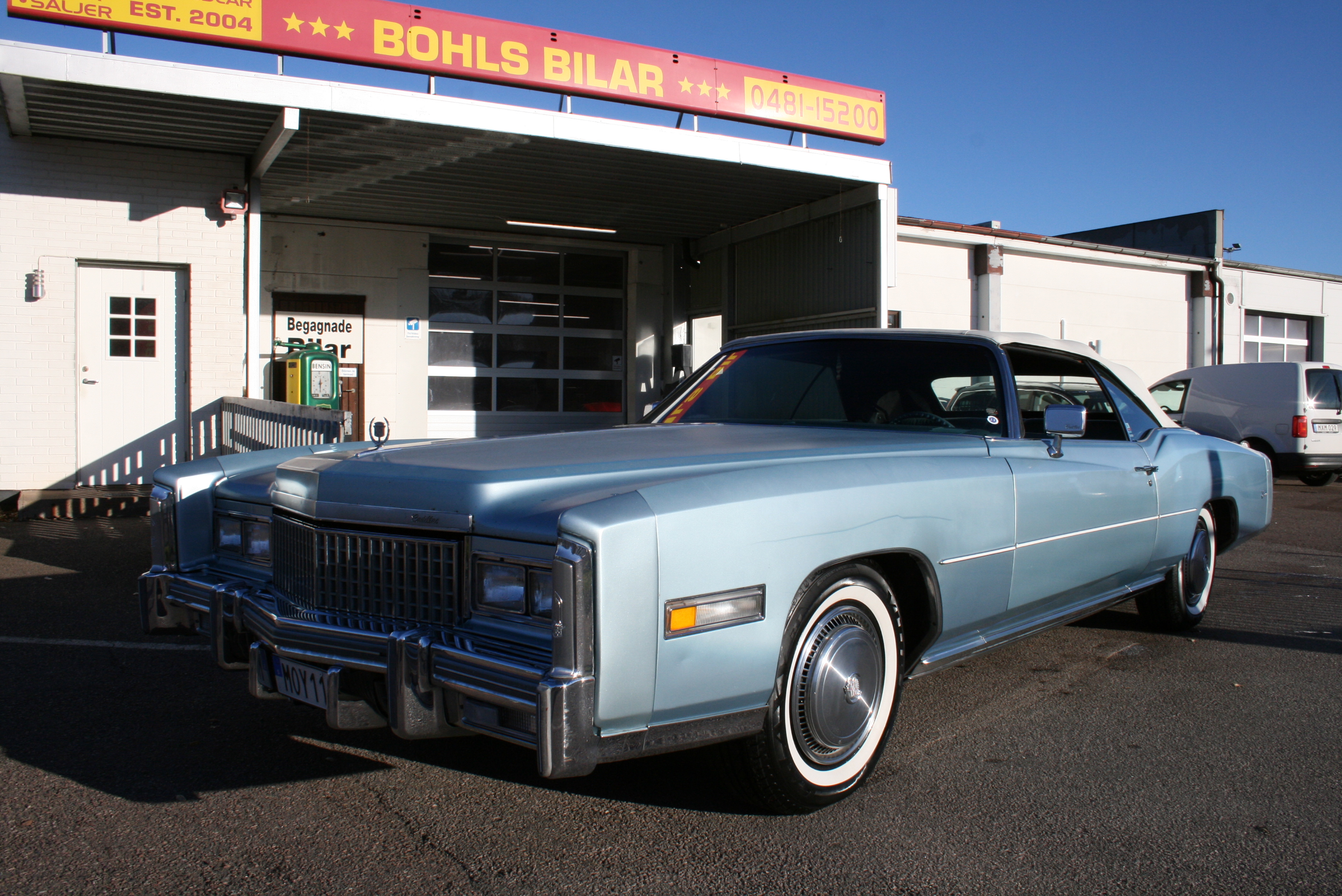Cadillac Eldorado Convertible, 24 000 miles en riktig lågmilare i originalskick, alla GMs fullstora cabbar fanns kvar till 1975 års modeller. 1976 års Cadillac Eldorado var den sista. Cadillac marknadsförde den som ”the last American Convertible, the end of an era, Priserna låg en bra bit över $10,000, vilket var enormt mycket pengar på den tiden, Denna 1975 Eldorado är i ett riktigt bra original skick. 5.70 lång, 2.03 bred och 2300kg tung är den en riktig bjässe. Motorn på 500 kubiktum eller 8.2liter är den största motorn i en serietillverkad bil någonsin. Helt underbar att köra, framhjulsdriften gör att det finns gott om plats utan kardantunneln. Sax-cabben ger extra utrymme i baksätet och fungerar fint. Man åker bekvämt 6 personer. Går nästan ljudlöst fram och det är en underbar känsla att glida fram med den enorma motorhuven framför sig. En ren lyxbil för livsnjutare! Vi ordnar finans och ev transport, Kontakta oss alltid för att boka en tid för visning, dels för att försäkra dig om att bilen inte är såld men även för att säkerställa att vi är på plats. Vi försöker alltid lösa visning och leverans när det passar dig även om du inte har möjlighet att komma till oss under ordinarie kontorstider, se fler bilder och videos på våran FB-sida, Bohls Bilar AB Säljer Byter Köper och Förmedlar din USA-bil samt classic fordon i Nybro sedan 2004, Välkomna önskar Joakim med personal!