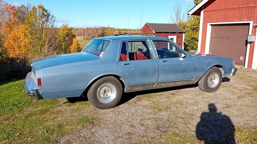 Fin blå metallic, nylackad för ett par år sedan. I princip rostfri, går väldigt fint med en 305 motor och 700 lådan.