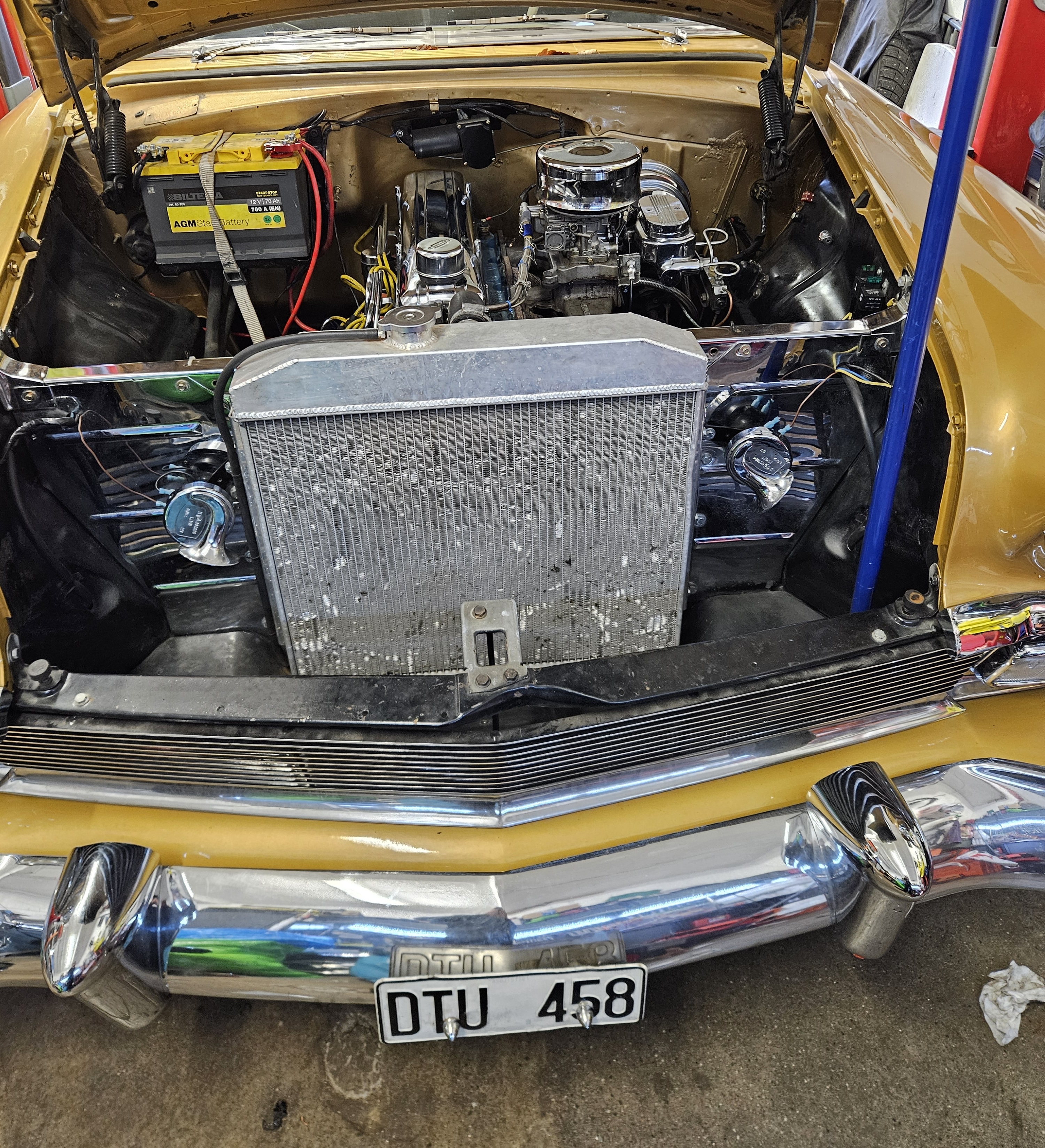 2tum dropp spindlar allt i framvagnen är byt,nya bromsslangar o rör, skivbromsar fram o bak, bromsservo, nytt innertak, dörrsidor, det mesta av kromet nytt, kromad tiltrattstång, custom grill, aluminium kylare, kromad Kylarram, nytt handsfack, ny framruta, nya gummilister, rutor och dörrar, drag, tillbaka flyttad framsoffa går att ta bort, hijackers, ny koppling, vajergas ,292a 6a lätt trimmad med 3vxl manuell hurst golvspak, brytarlös tändning, vajergas,