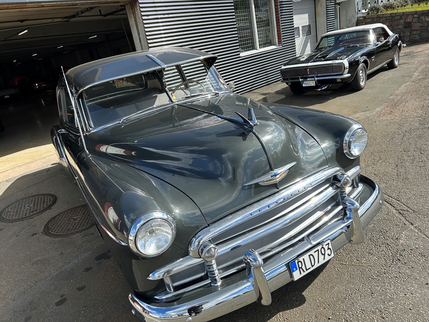 Mycket fin veteranbil . Går underbart både i motor och växellåda powerglide Serostyrning. Krom i närapå nyskick . Inredning hel och fin .