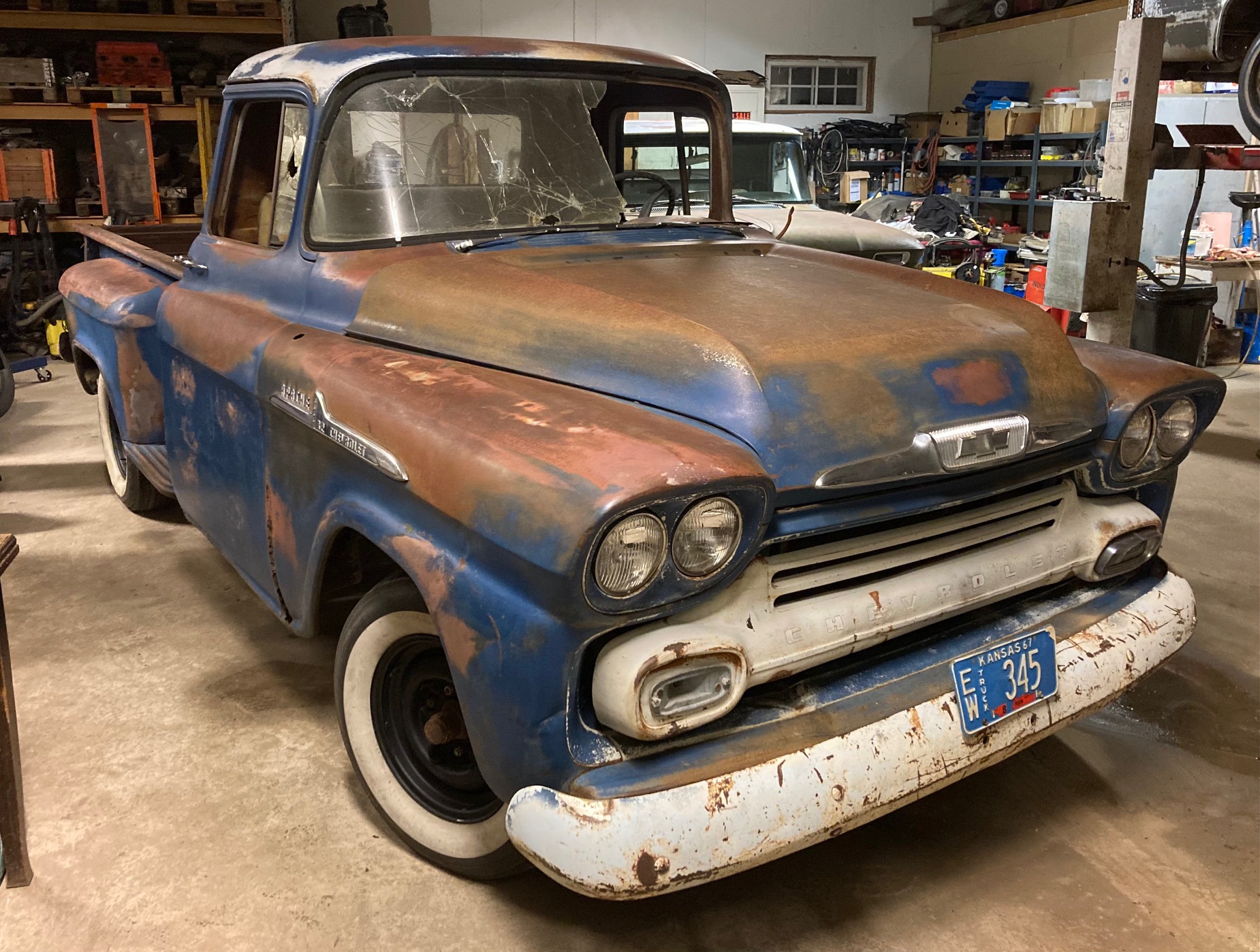 1958 Chevrolet Apache 3200 Halvton Stepside Pickup Ny importerad solbakad och mycket välbehållen arbetshäst som tjänstgjort på en farm i västra torra Kansas Ej fungerande men original drivlina sitter kvar i bilen Alla papper finns för registrering Finans med My Money kan ordnas Hemtransport kan arrangeras