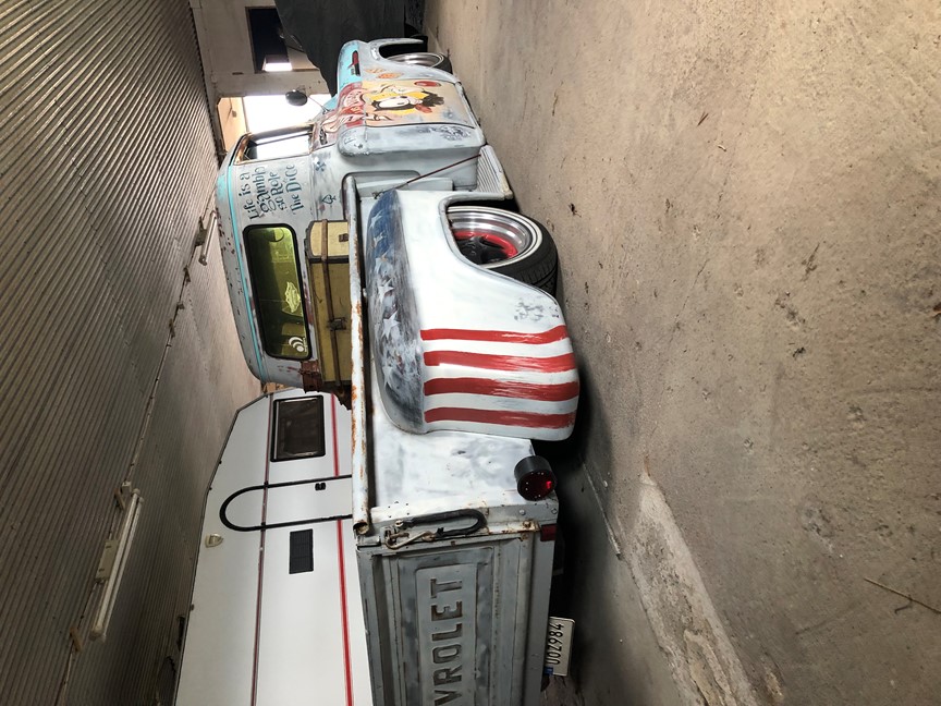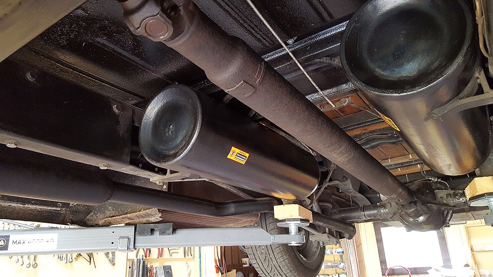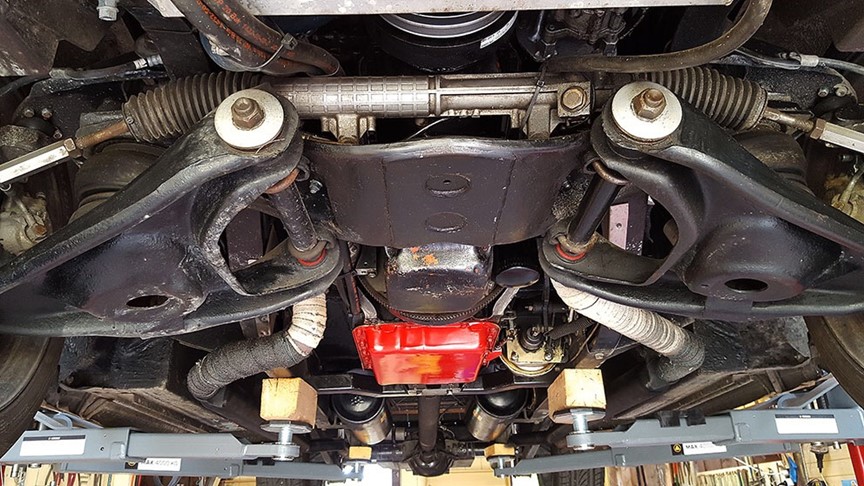 - Luft runtom med elkompressor och två lufttankar under bilen.