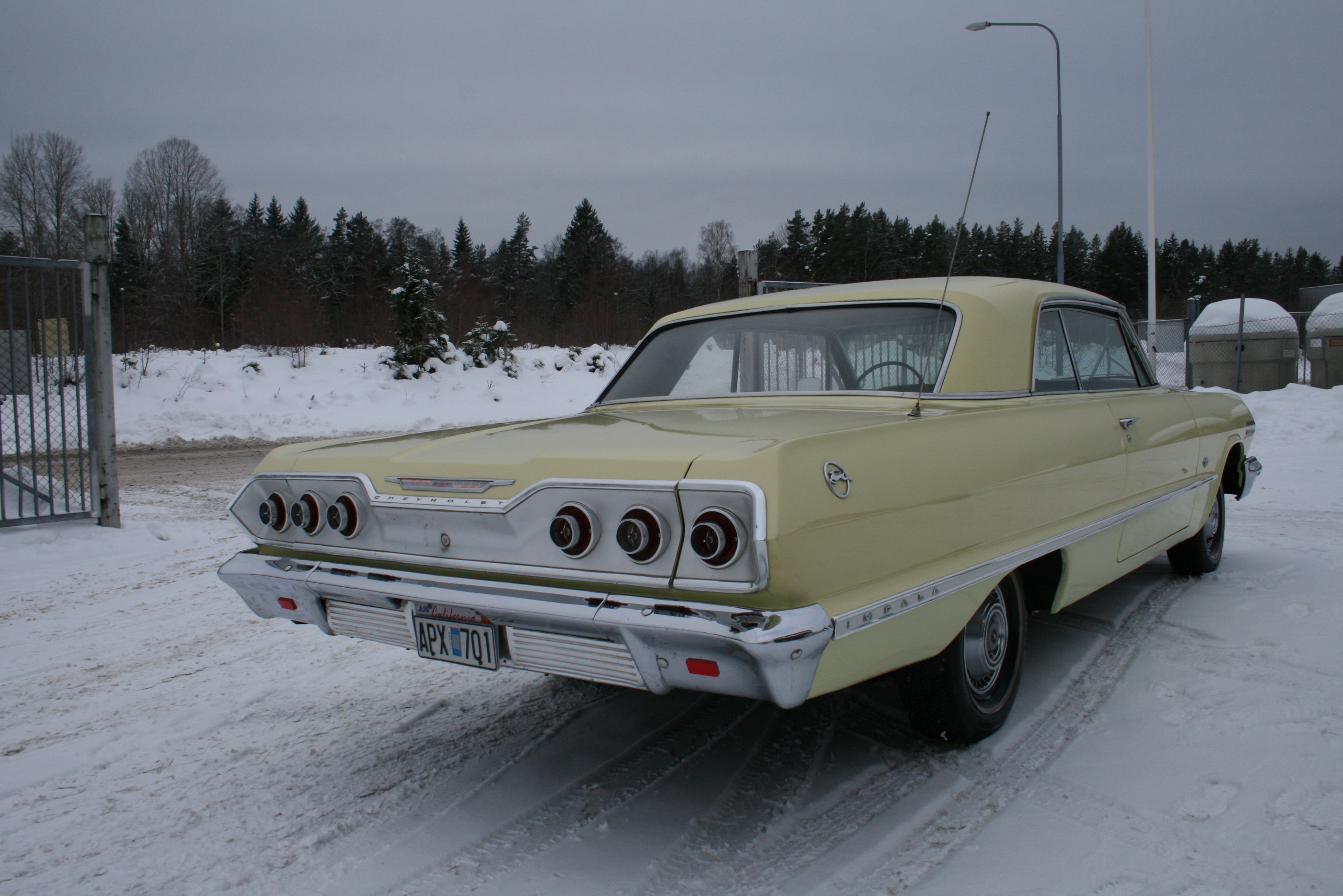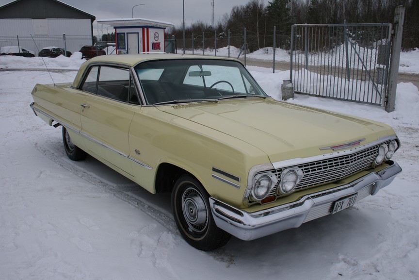 Chevrolet Impala 2 Door hardtop 1963 årsmodell, 327 Cui V8 med Powerglide som går fint, California kärra med en äldre omlackering i originalkulören Adobe Beige ljusgul med svart inredning i fint skick och helsoffa till skillnad mot SS modellen, nyservad med lite nya bromsdetaljer, stereo och en X-tra tempmätare installerat, vi ordnar finans och ev inbyte samt export och transport inom Sverige om så önskas till bra priser, fler USA bilar och klassiker finns i hallen, ständigt bilar på väg in, förmedlingsuppdrag tages, öppet tisdag-fredag 10-17 samt lördagar 10-14 all övrig tid efter överenskommelse, vi ser gärna att ni kontaktar oss innan besök för bästa service, Välkomna till Bohls Bilar AB i Nybro sedan 2004 önskar Joakim med personal!