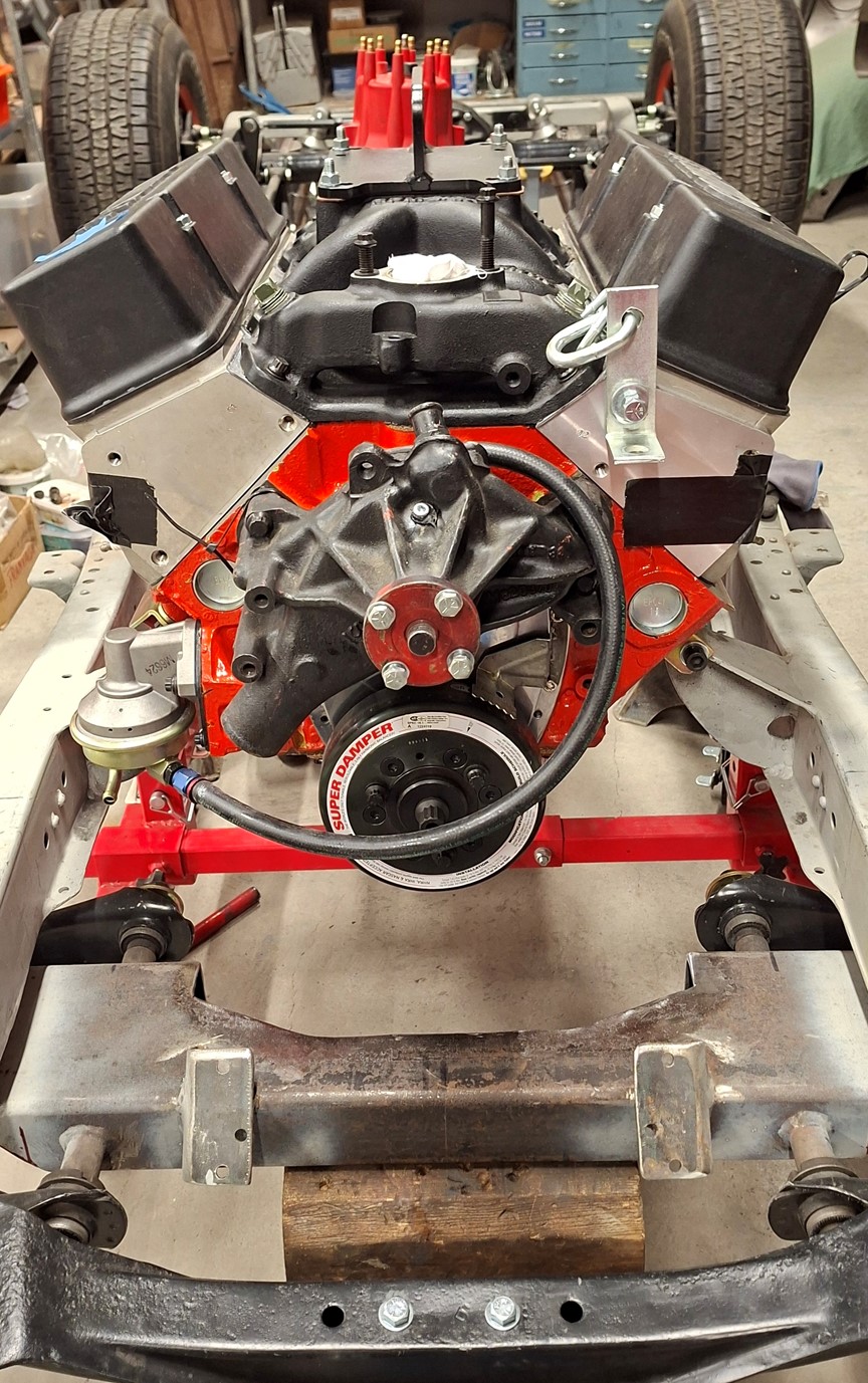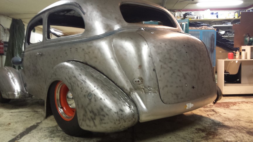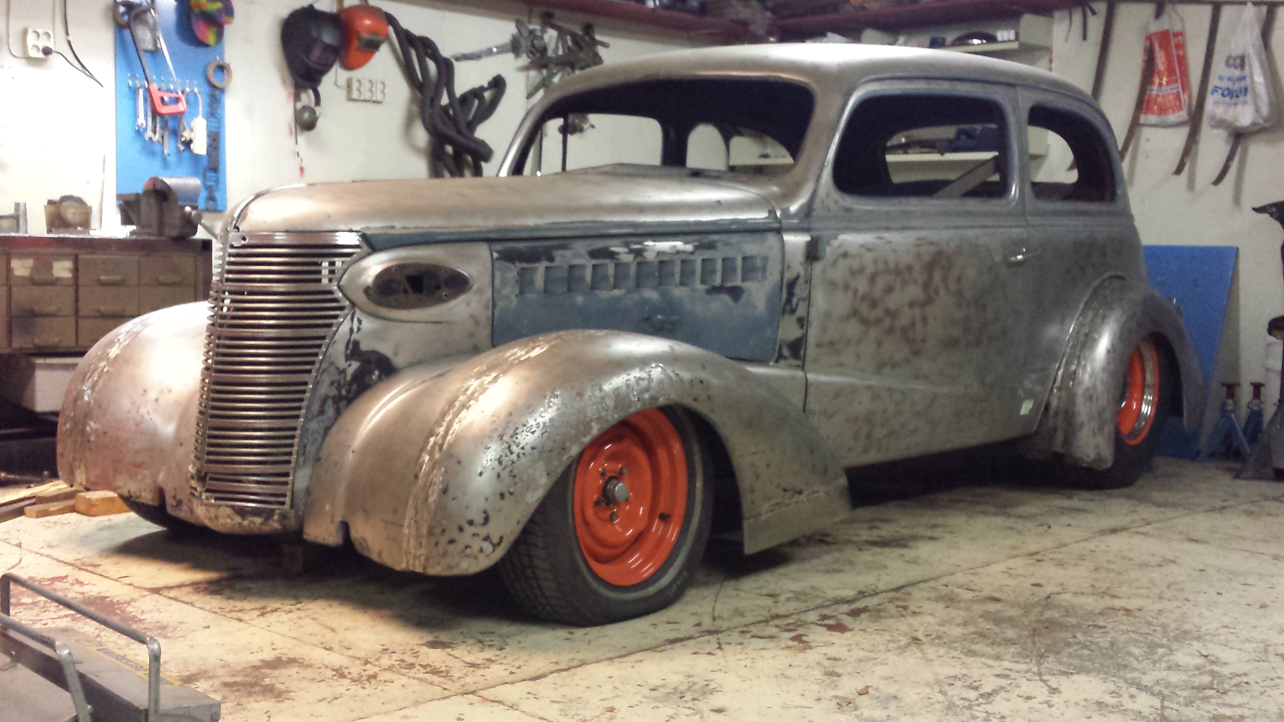 Barnfind Original 2 dr kaross i bra skick med ny brandvägg, nya golvplåtar ny tailpan, nya trösklar 2 sänkt över chassiet som är en X förstärkt originalram, med 2 indragna ramskenor med C notch med individuell framvagn med kuggstångsstyrning, QA1 dubbel justerbara coilovers, 11 skivbromsar, Ford 9 bakaxel som är kortad till 54 med HRW9 nodular hus 3,62 lager, Eaton truetrac diffbroms, 4,861 Richmond utväxling, Strange 35 splines drivaxlar, nya lager, Ford Racing 11 skivbromsar.