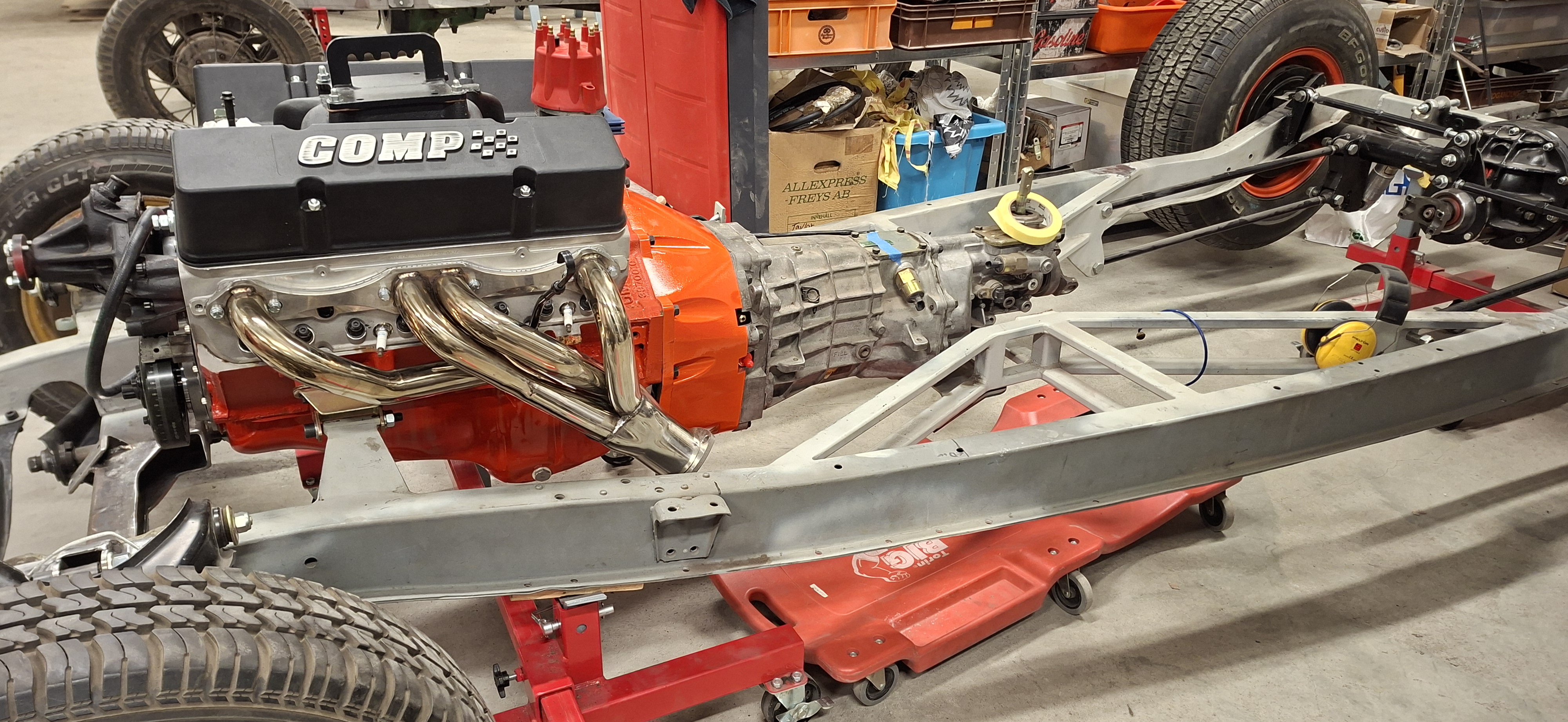 BW T56 6 speed växellåda, Lakewood bellhousing, Holley hydrauliskt urtrampningslager. Intresserade får mer detaljer om alla delar som ingår. Bilen var senast besiktad 1955 enligt de papper som finns, en Z reggad originalbil som har nya skyltar och är ombyggd.