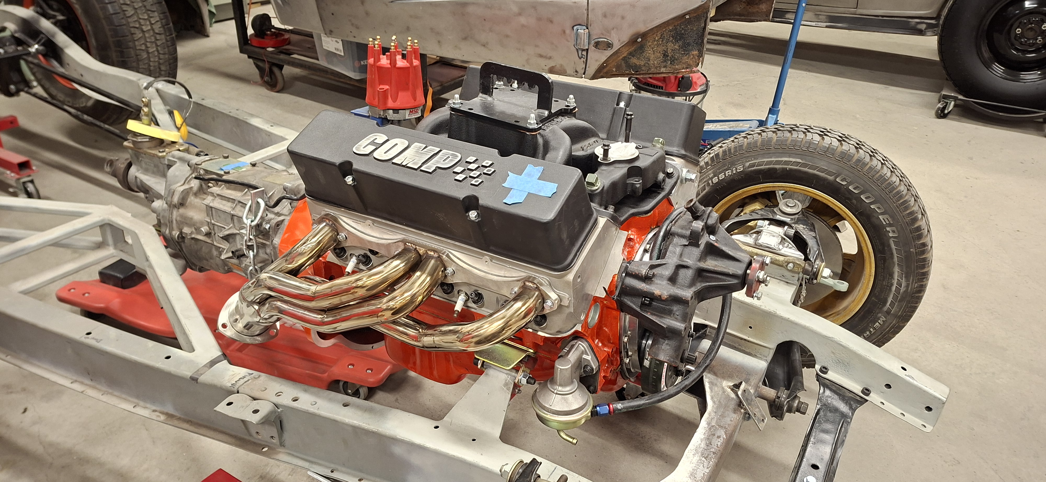 Motor nybyggd nyrenoverad Csb 327 borrad 0,30 med excenterslipad vevaxel med 3,3 slaglängd, Manley kolvar, 210 cfm alutoppar, compcams thumper rollercam, Edelbrock airgap performer insug Edelbrock 750 dp förgasare MSD fördelare, rostfria hedders.