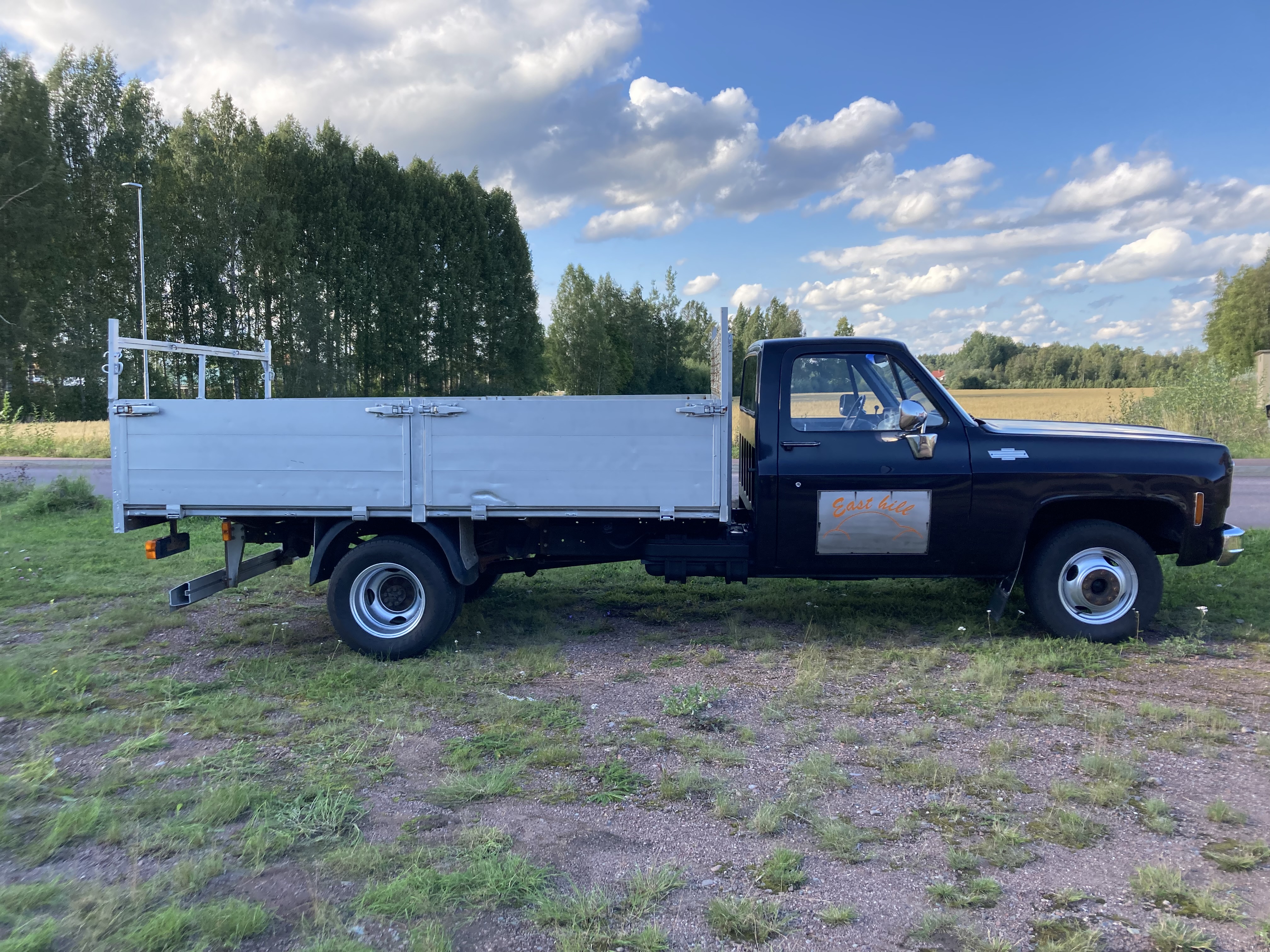 Praktisk pickup med flatbed i alu med löstagbara sidor, stort flak 2.20 bred och 3.5 långt.