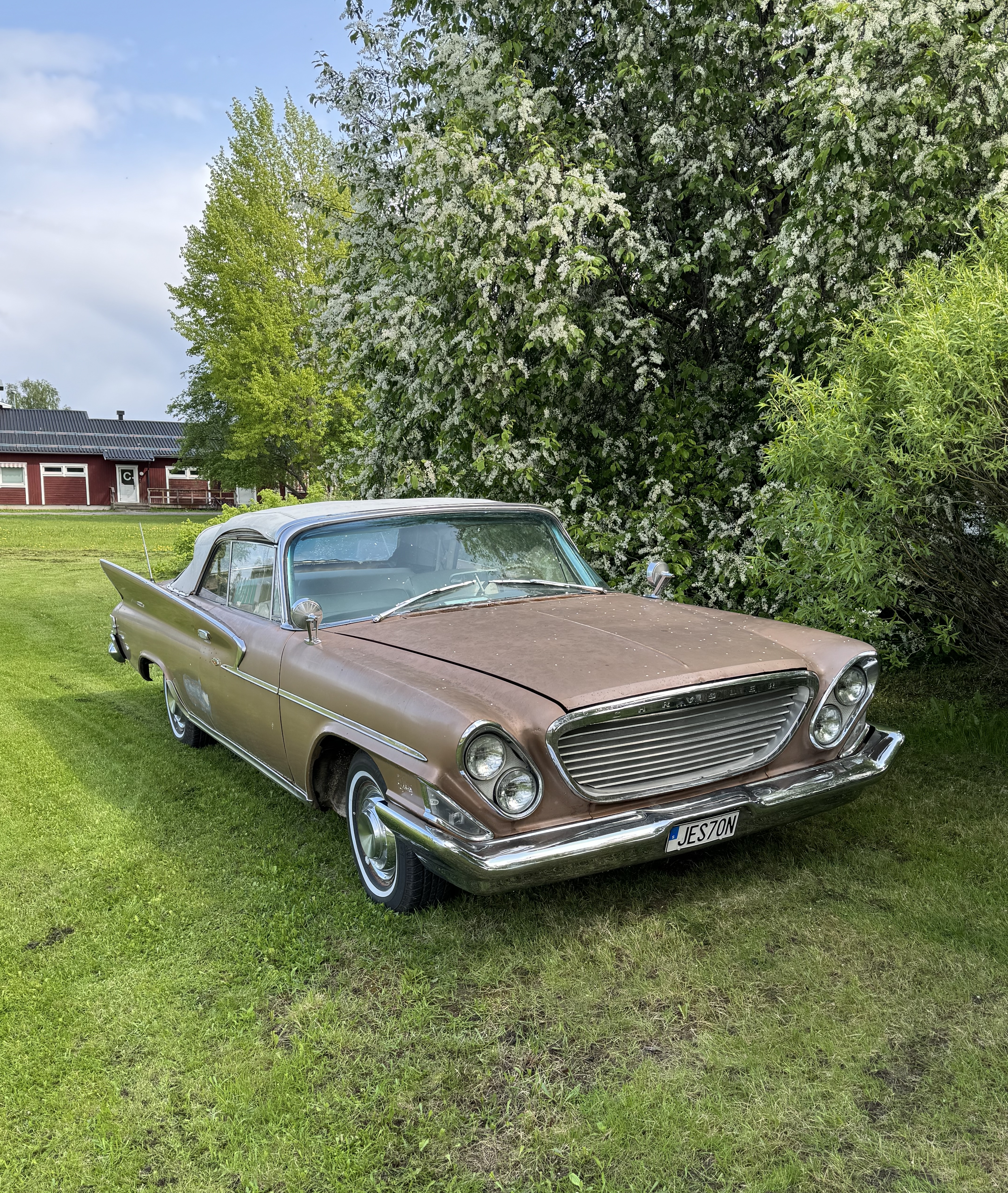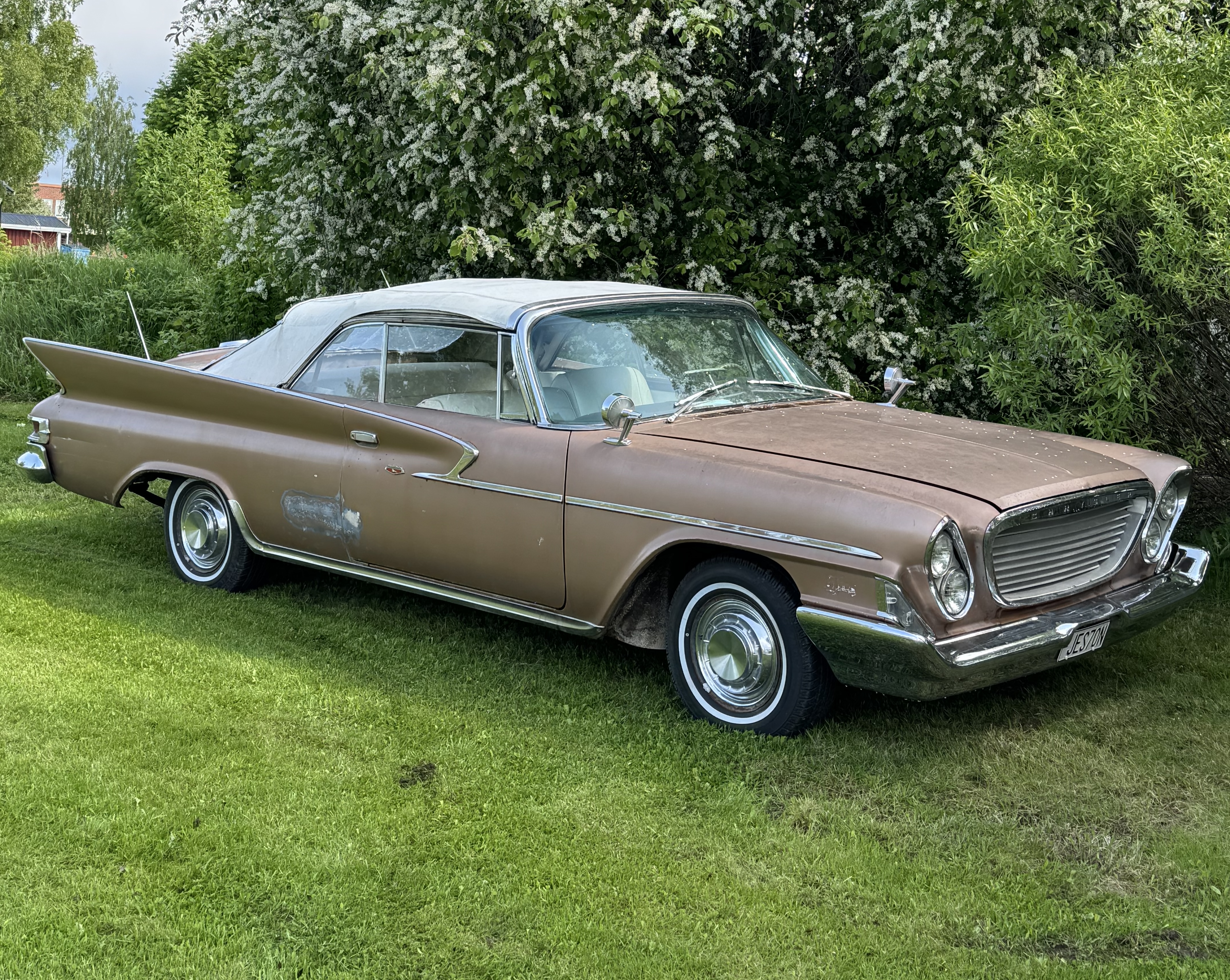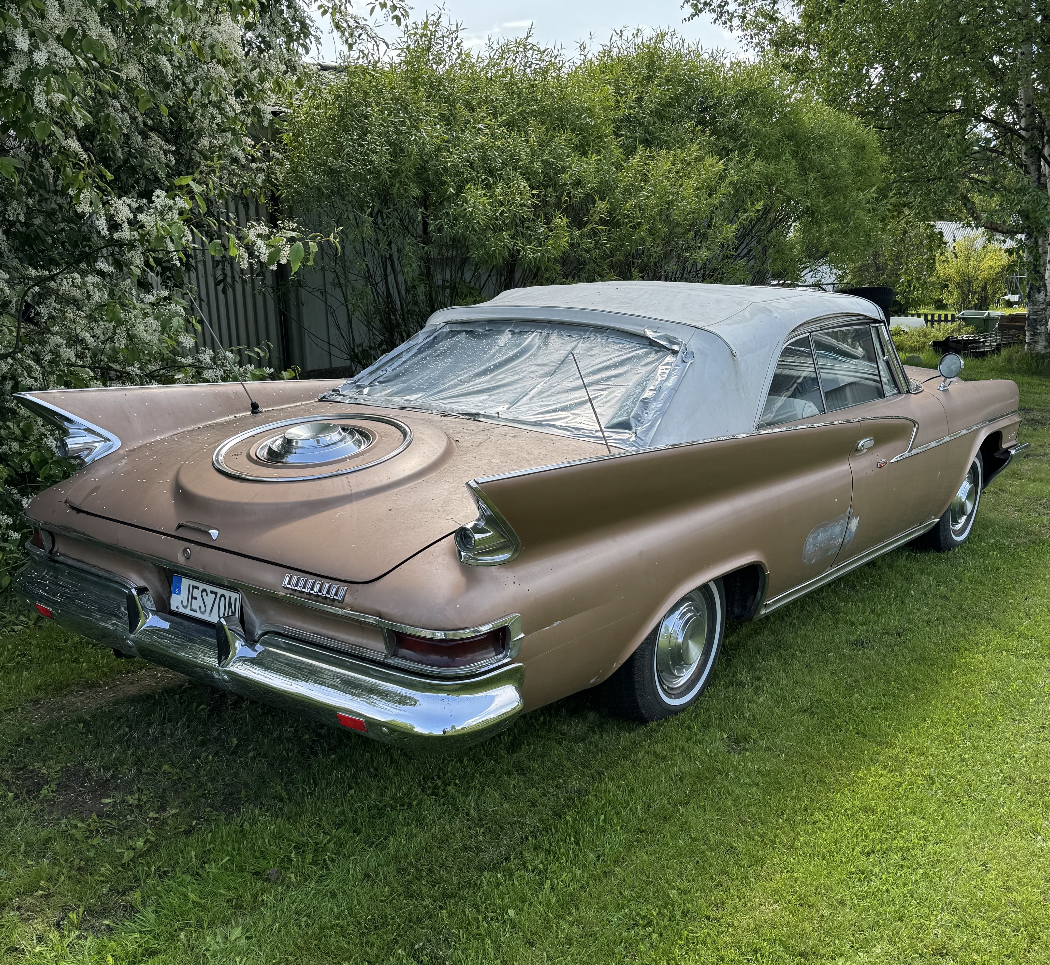 Chrysler Newport Convertible 1961. Califonia bil. Helt orörd cosmetisk en av Virgil Exners (Mystery Cars) 1 av 7 gjorda. Besiktad för alltid. 361 o Borg Warner Låda Tre on the floor. Säljes eller bytes mot någe roligt. 395 eller bud