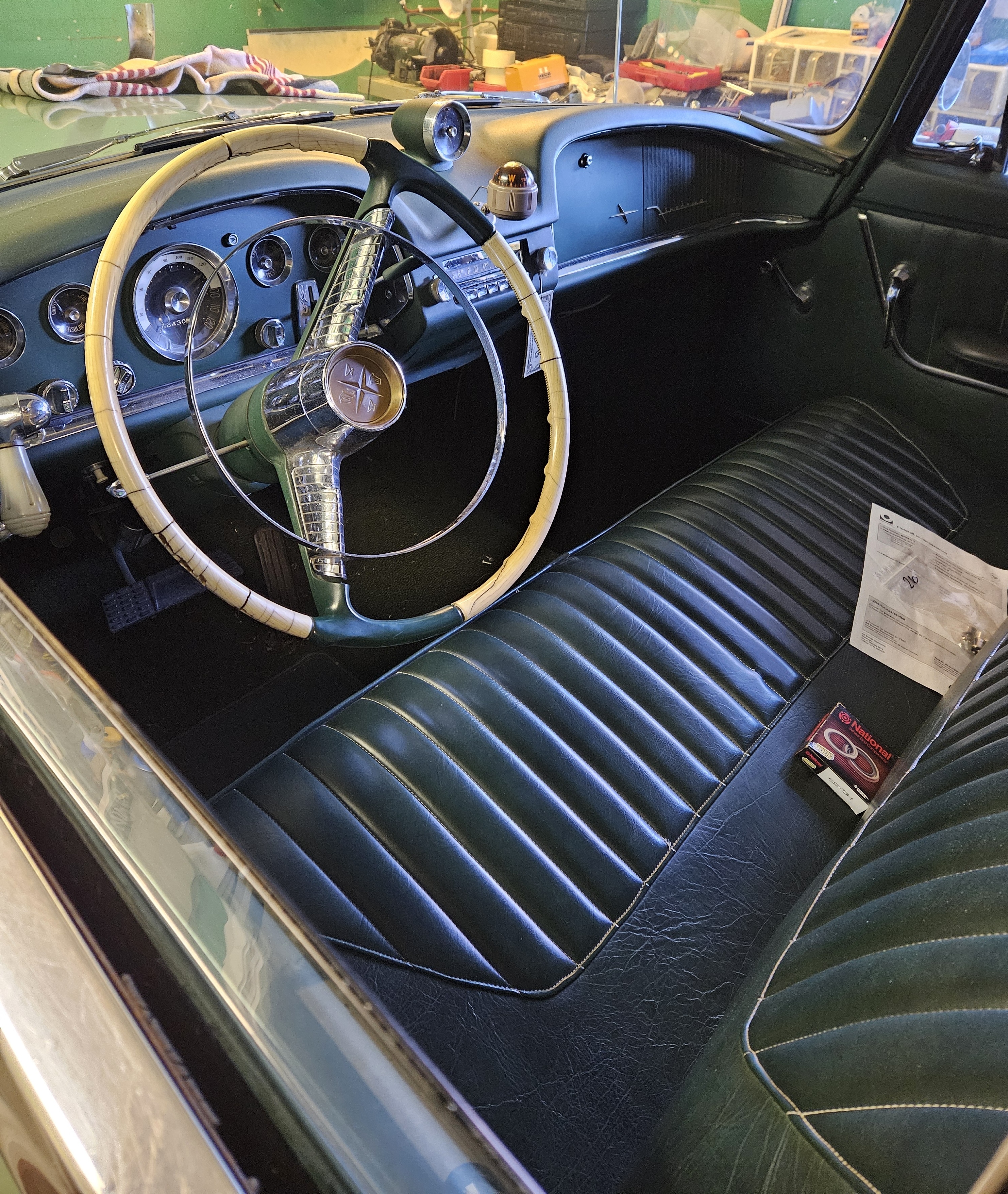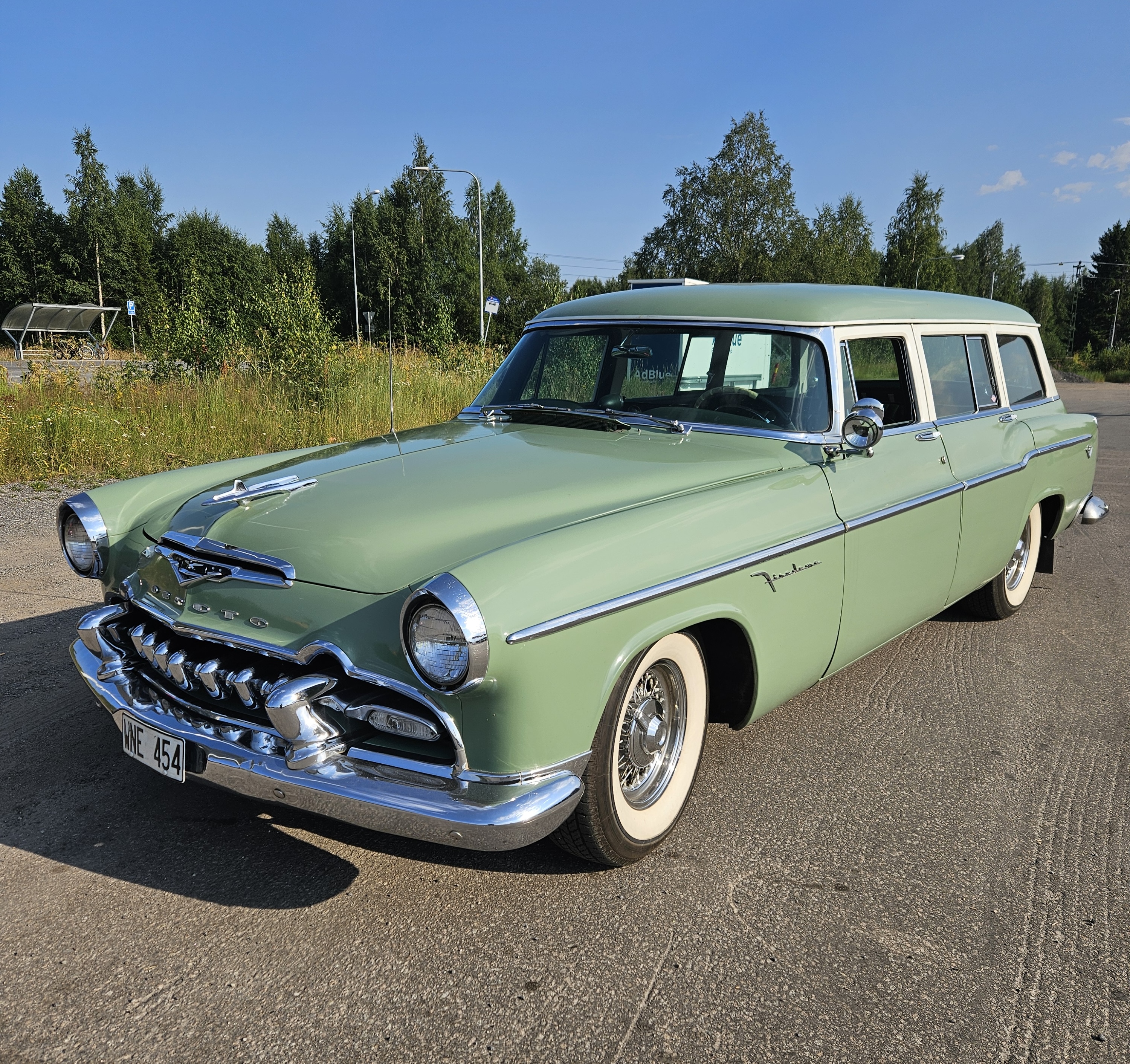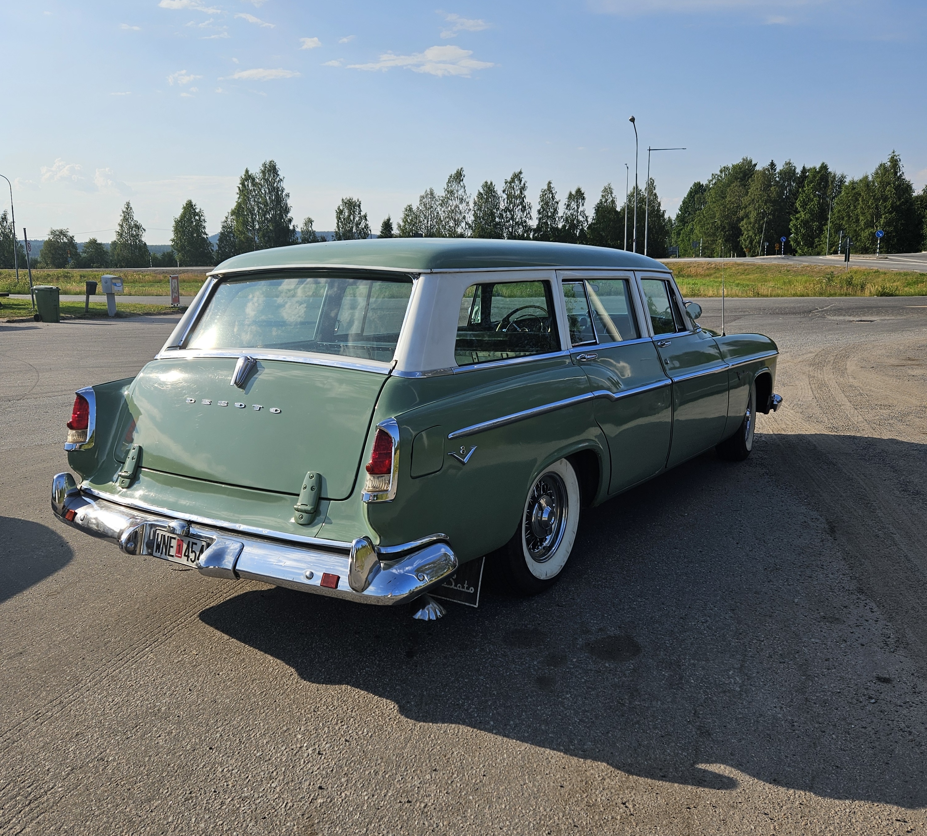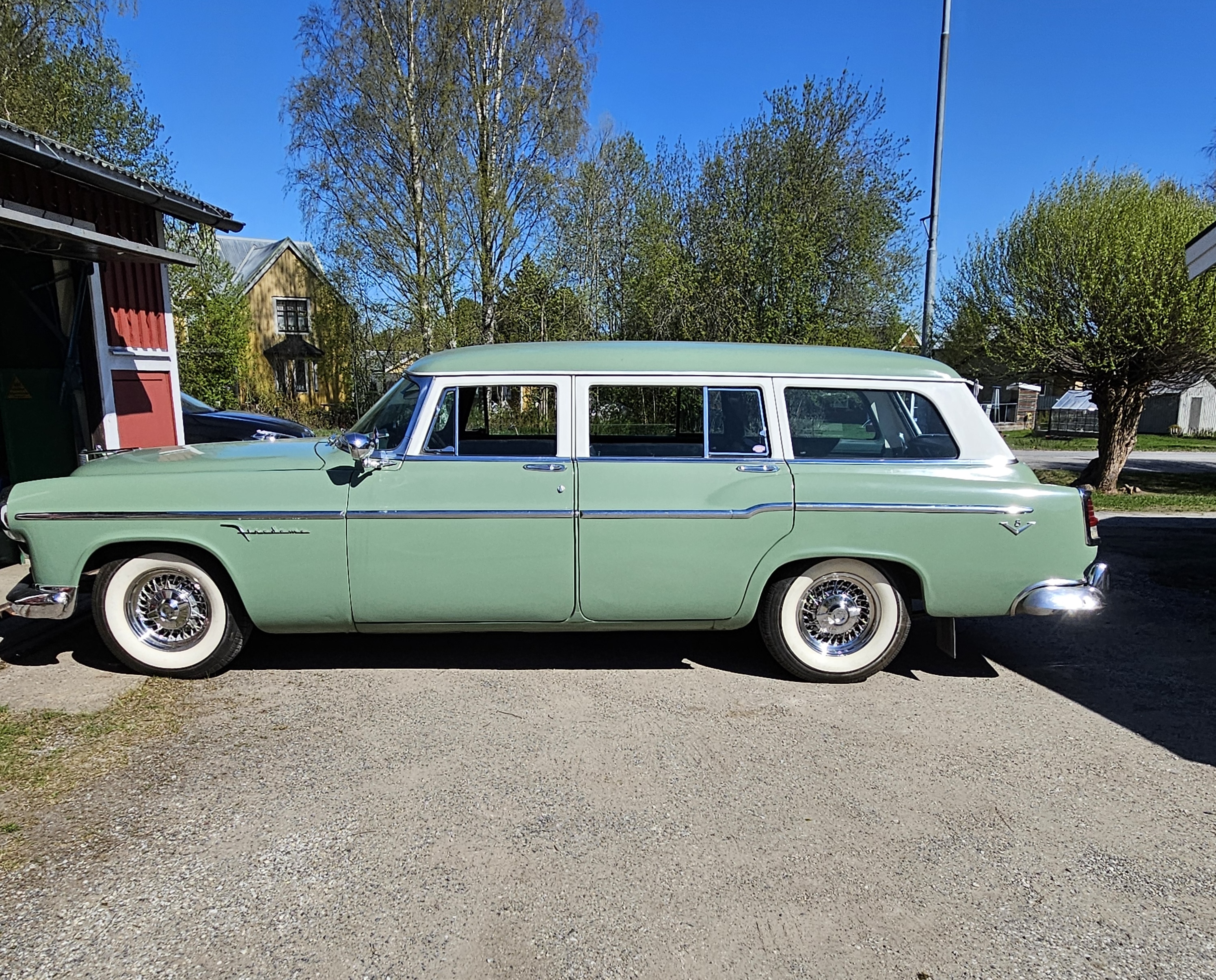 Intressekoll på min Desoto Firedome -55 , mycket ovanlig hgw 3st i Sverige , bygd i 1803 ex , bil i bra brukskick , omlackad nån gång lite patenterad lack , fin i inredning , motor 331 hemi , 2-stegs automat (powerflite) , 6Volt nytt batteri , nyrenoverad generator o nytt laddtelä , nya blinkersglas , bakljus , bakljus, nytt grillemblem , nykromad bakre stötfångare medföljer , sökarlykta med backspegel , besiktad 24-08 UA.. Såld 1988 från Oregon till Holland , kom till Sverige 2004. Orginalfälgar med ww radial + kapslar , sitter ekerfälgar med ww radial på bilen. Kan vara ev. intresserad av byte , 1937-53 hotrodcustom eller Mopar 1955-60 2drht , 4drht , cab , samma pengar eller billigare med pengar emellan. Finns det något intresse annars får den vara kvar.