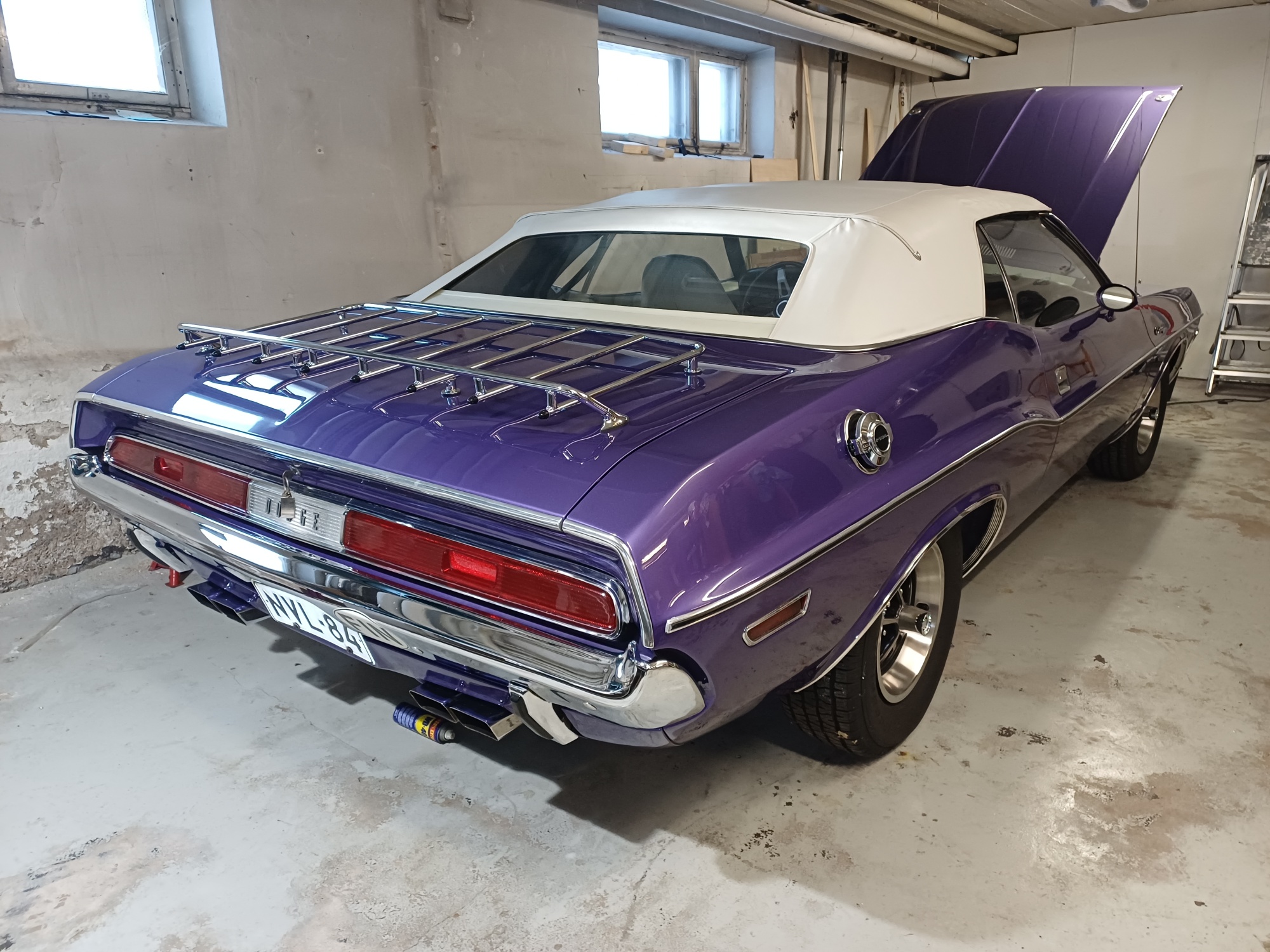 For sale Rare 1970 Dodge Challenger survivor, 2010 fully restored to nut-and-bolt rotisserie perfection. This collector-quality muscle car is finished in stunning FC7 Plum Crazy Purple with a white leather interior and matching white top.