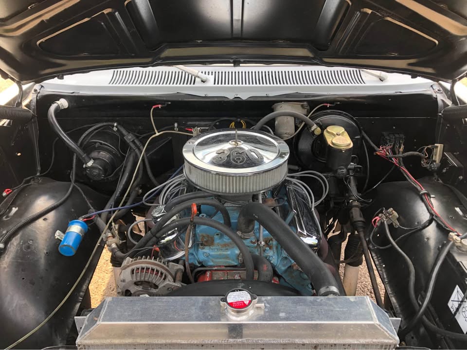 Motorn har en 4-ports Holley och stålheaders, öppet luftfilter, aluminiumkylare samt ett tillåtande avgassystem.