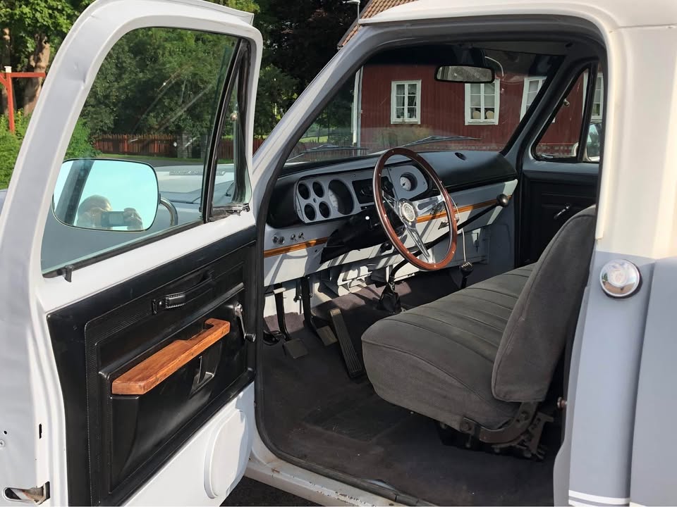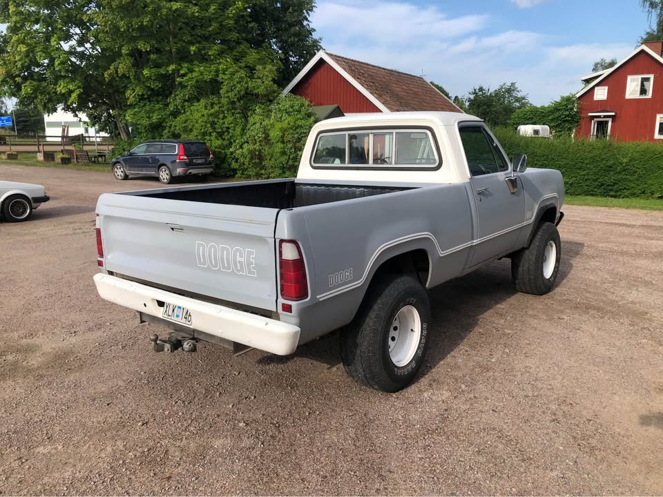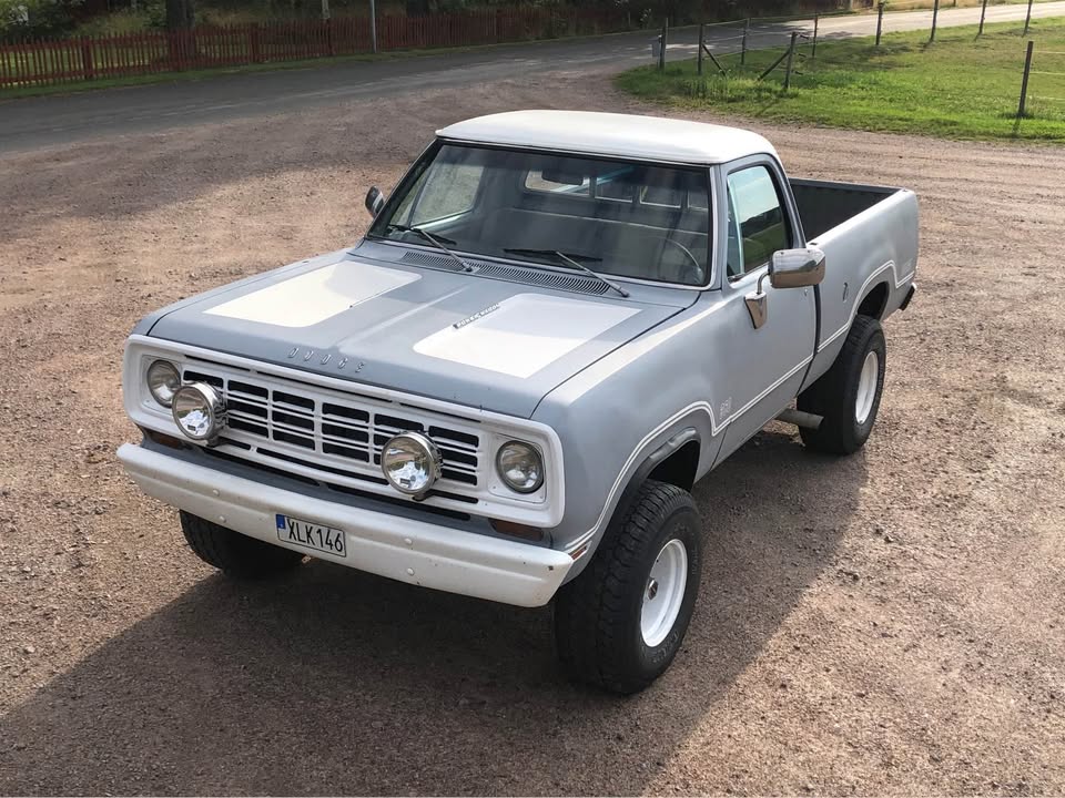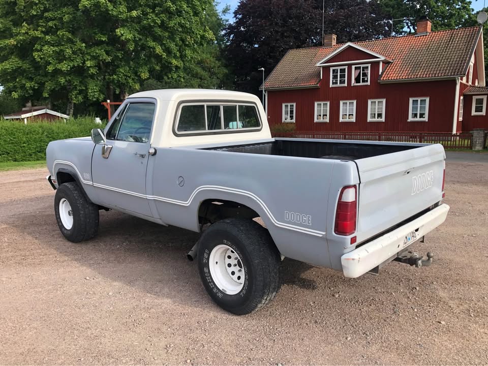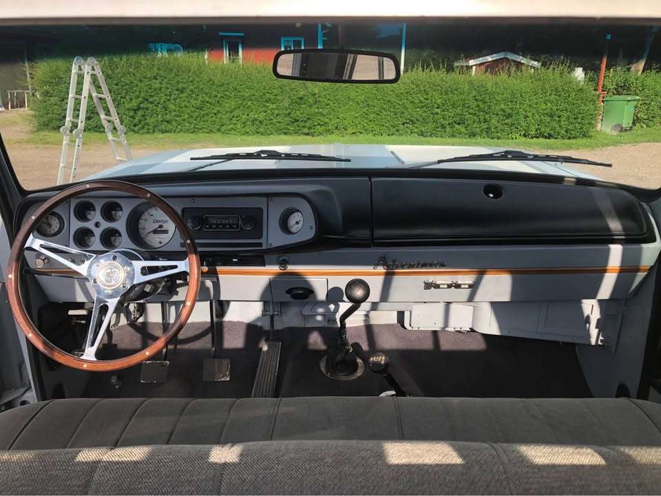 Dodge W100 Adventurer utrustad med 360 (5,9l) V8 och manuell 4-vxl låda (np435) samt fördelningslåda (np203). Den är konstant fyrhjulsdriven. Den har optionsinstrumentbräda med klocka och varvräknare. Klockan är död, varvräknaren är utbytt.