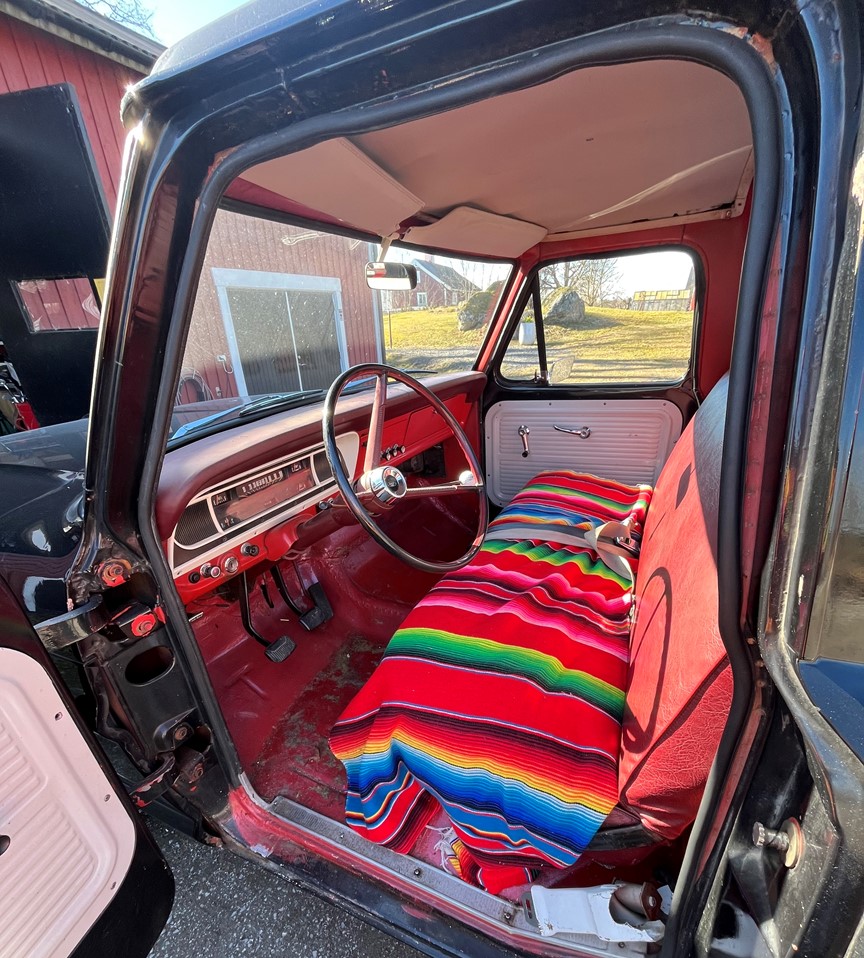 Stepside med renoverad 240 motor. Renoverad flak, rostfri ram, skaplig lack. Allt fungerar. Rullande renovering, följer med bl a ny dashpad, lister till hela hytten, styrservo mm