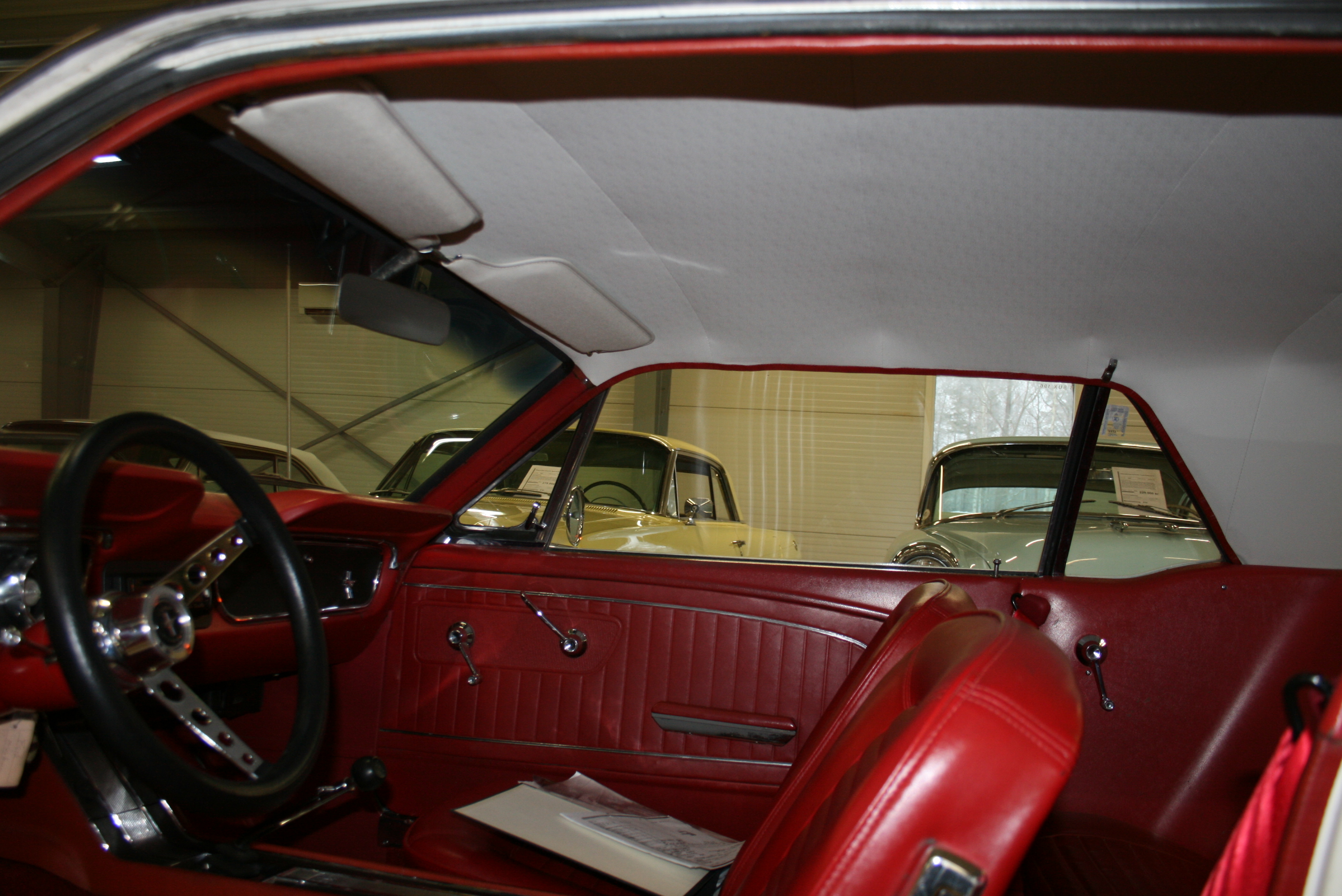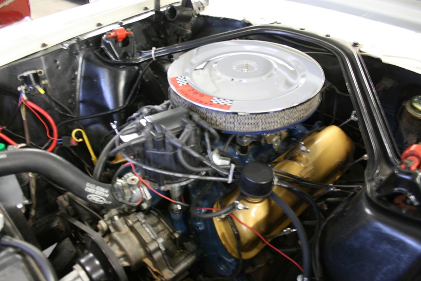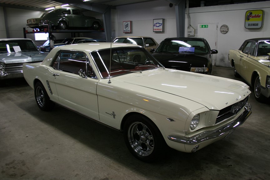 En Ford Mustang 1965 A som såldes ny i december 1964 med första registreringsnummer AC 65545 enlig dokumentationen från Länsstyrelsen, bilen är A-codad vilket innebär 289`Cui V8 med fyrport från fabrik, 4 växlad manuell och skivbromsar fram, originalkulören Wimbledon White med den röda vinyl inredningen är en läcker färg kombination, elektrisk soppapump och brytarlös tändning, Edelbrock 4-ports förgasare, Chrome 15 tums fälgar, dragkrok monterat, mycket pigg och lättkörd, mullrar gott ur de dubbla rören, en klassisk Musse redo för att sträcka ut benen på de svenska sommarvägarna! Ring oss för mer info och visning utav denna bil, fler klassiker och USA-bilar finns i hallen, vi byter in din bil och ordnar både finansiering och transport samt förmånlig entusiastförsäkring, Bohls Bilar AB Säljer Byter Köper och Förmedlar jänkare i Nybro sedan 2004, Välkomna önskar Joakim, Timothy och Marcus!
