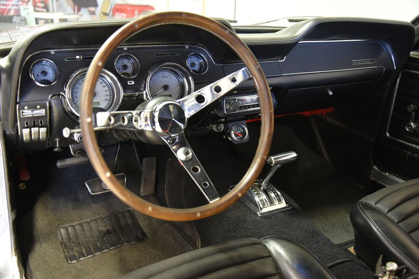 Svensksåld Ford Mustang Hardtop 1968. V8 302 som blev renoverad för ett antal år sedan och går hur fint som helst. Ny Edelbrock förgasare, elektronisk tändning, ny vattenpump och aluminiumkylare. FMX automatlåda. 8 bakaxel med ny klump och diff som monterades 2023. Willwood skivbromsar fram och bak med servo monterades även det 2023.Rostfritt avgassystem från Magnaflow samt headders. Ett väghållnings kitt med grövre krängningshämmare, andra bussningar och bladfjädring är också monterat. Ny rostfri tank. Lackerad i nuvarande kulör för ca 20 år sedan och är fortfarande i ett riktigt trevligt skick. Inredning i svart vinyl är även den i ett härligt fint skick med stolar från en lite nyare Mustang. Mattan i kupén är bytt. Nya mätare i instrumentet. Nya fönstermekanismer till alla rutorna. Ny el dragen i bilen. American Racing aluminiumfälgar med 22545-17 fram och 27540-17 bak med ca 7mm mönsterdjup. En riktigt frän Mustang från 1968 som sticker ut rejält med det fina stuket och ett härligt ljud. Riktigt trevlig bil rakt igenom som känns tight och stabil på vägen samt en drivlina som fungerar utan anmärkning. Motor bytet är inskrivet hos Transportstyrelsen. Besiktigad 2019-05-03 och nu besiktningsbefriad.
