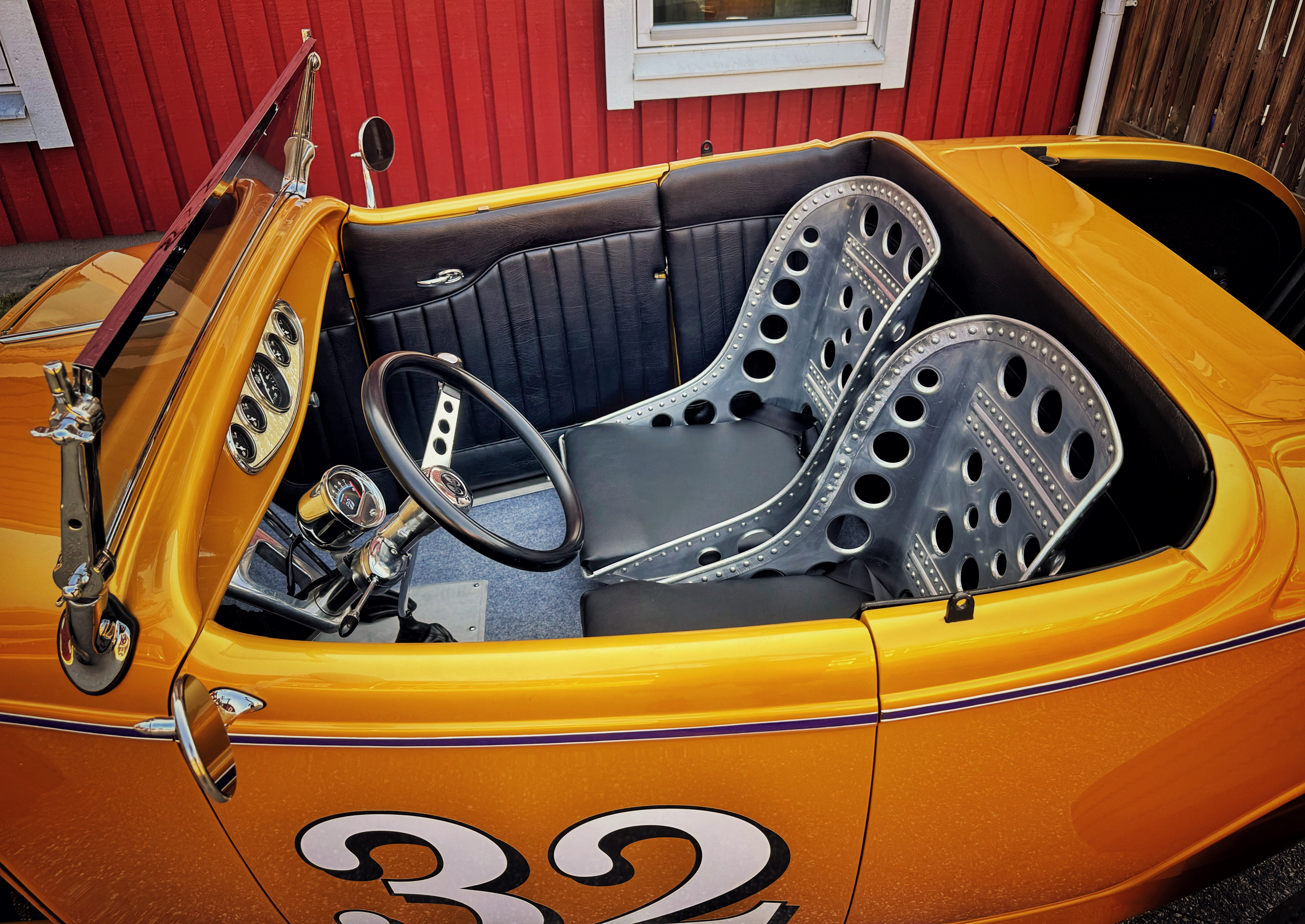 Hot Rod Ford 1932 Roadster, som är i ett riktigt fint skick, nyrenoverad 331 Hemi, som inte ens är körd 100 mil sen renovering, även lådan som är en Th 350 är renoverad, karossen är en plastkaross från Australien, som tydligen ska va en av dom bästa som finns på marknaden, reggad som den står med Hemin besiktningsbefriad med nuvarande regler, svärmorslucka, gälad huv mm!