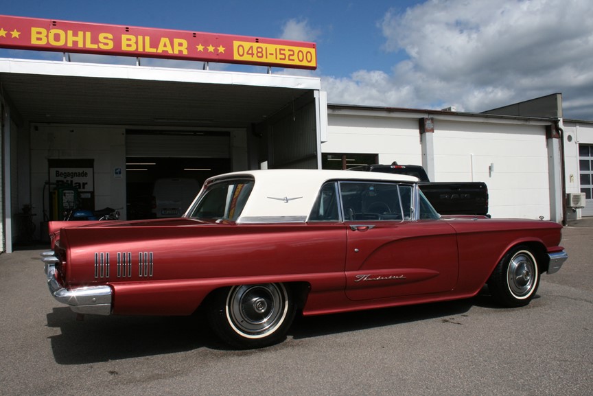 Ford Thunderbird Coupè 1960 årsmodell, andra generationens modell även kallad Square Bird och den kanske mest eftertraktade med de 3 bakljusen, 352` Cui Thunderbird V8 motorn och Cruise-O-Matic som går fint, välutrustad med elhissar, power steering och power brakes, äldre omlackering i en snygg färgkombination med en vinrödmetallic kulör och gräddvitt tak, omsydd grå tyg inredning i fint skick, lackerad svart undertill, ett bra alternativ till Fairlane och Mustang, Vi ordnar finans och ev transport, Kontakta oss alltid för att boka en tid för visning, dels för att försäkra dig om att bilen inte är såld men även för att säkerställa att vi är på plats. Vi försöker alltid lösa visning och leverans när det passar dig även om du inte har möjlighet att komma till oss under ordinarie kontorstider, se fler bilder och videos på våran FB-sida, Bohls Bilar AB Säljer Byter Köper och Förmedlar din USA-bil samt classic fordon i Nybro sedan 2004, Välkomna önskar Joakim med personal!