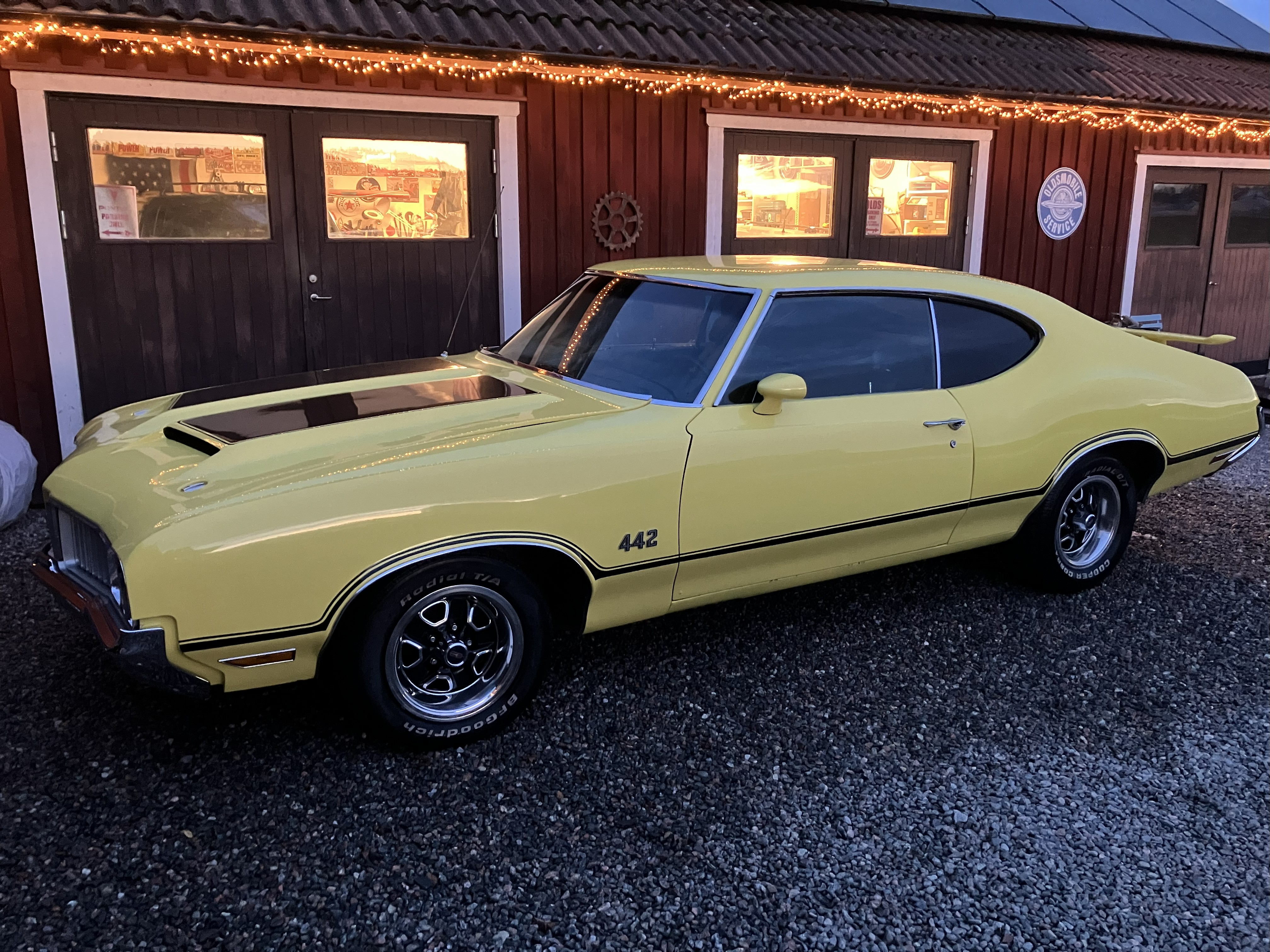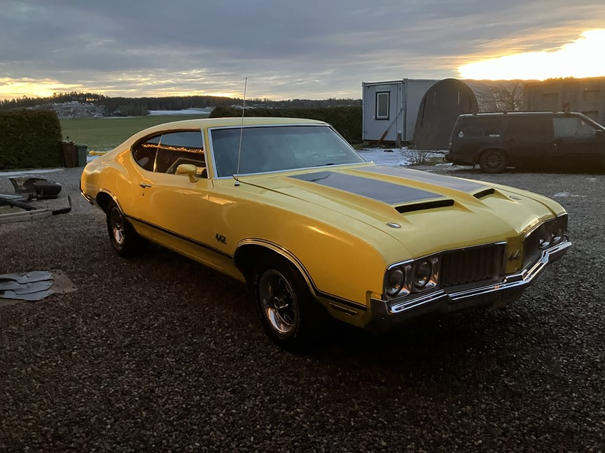 Ombyggd till -70´s utseende bak o fram. Klonad till 442. Mätarställning23803miles. Motor utbytt till 455. Växellåda TH700. Finns lackskador men överlag fint bruksskick. Inredningen bra bruksskick. Fler bilder kan tas och skickas vid seriöst intresse.