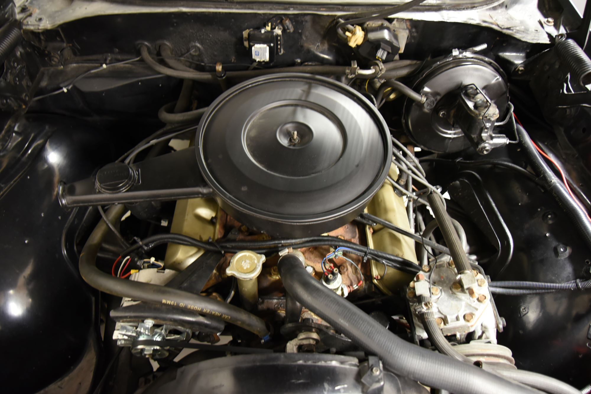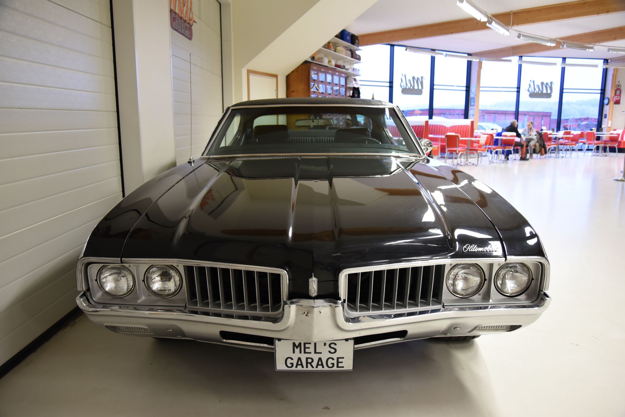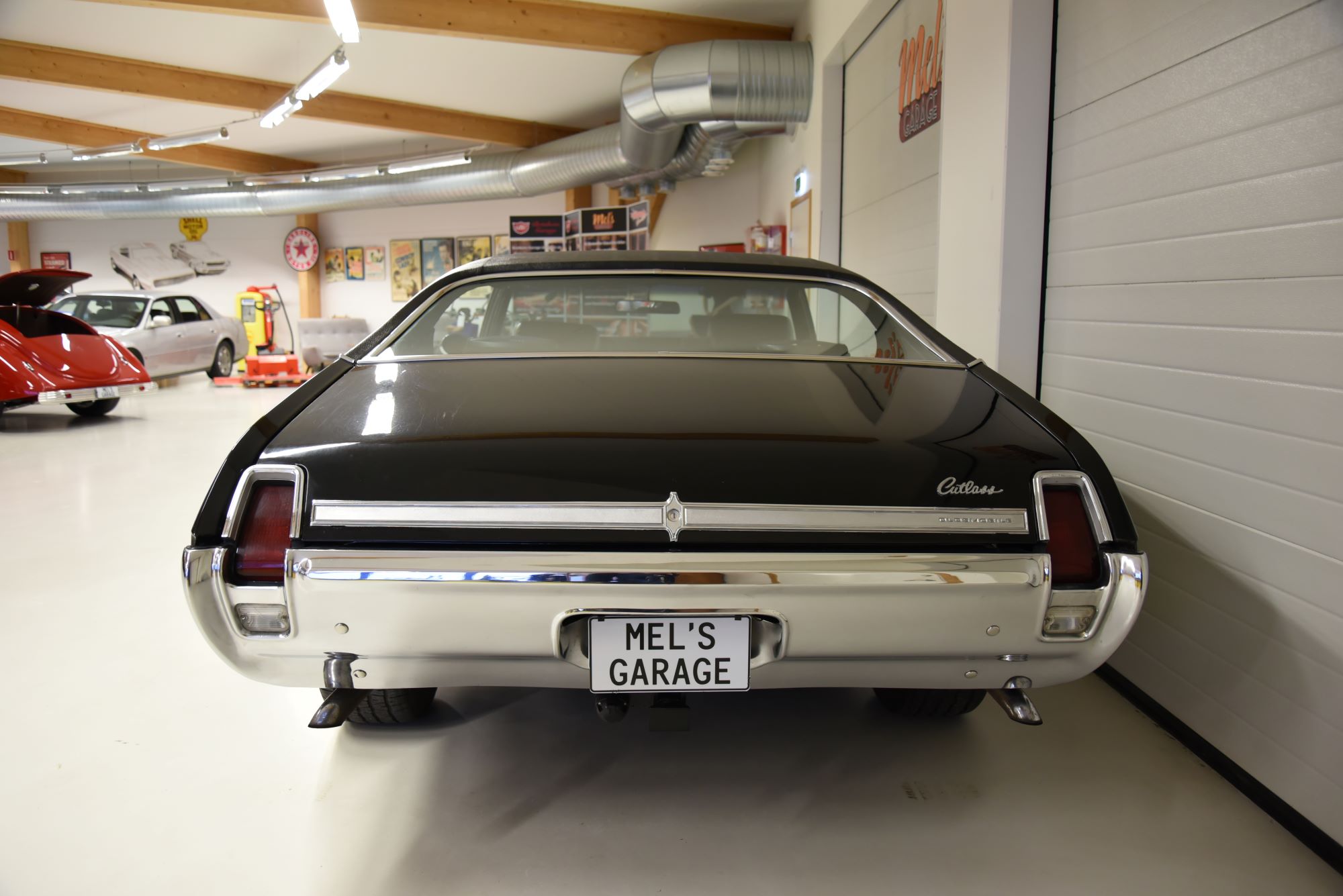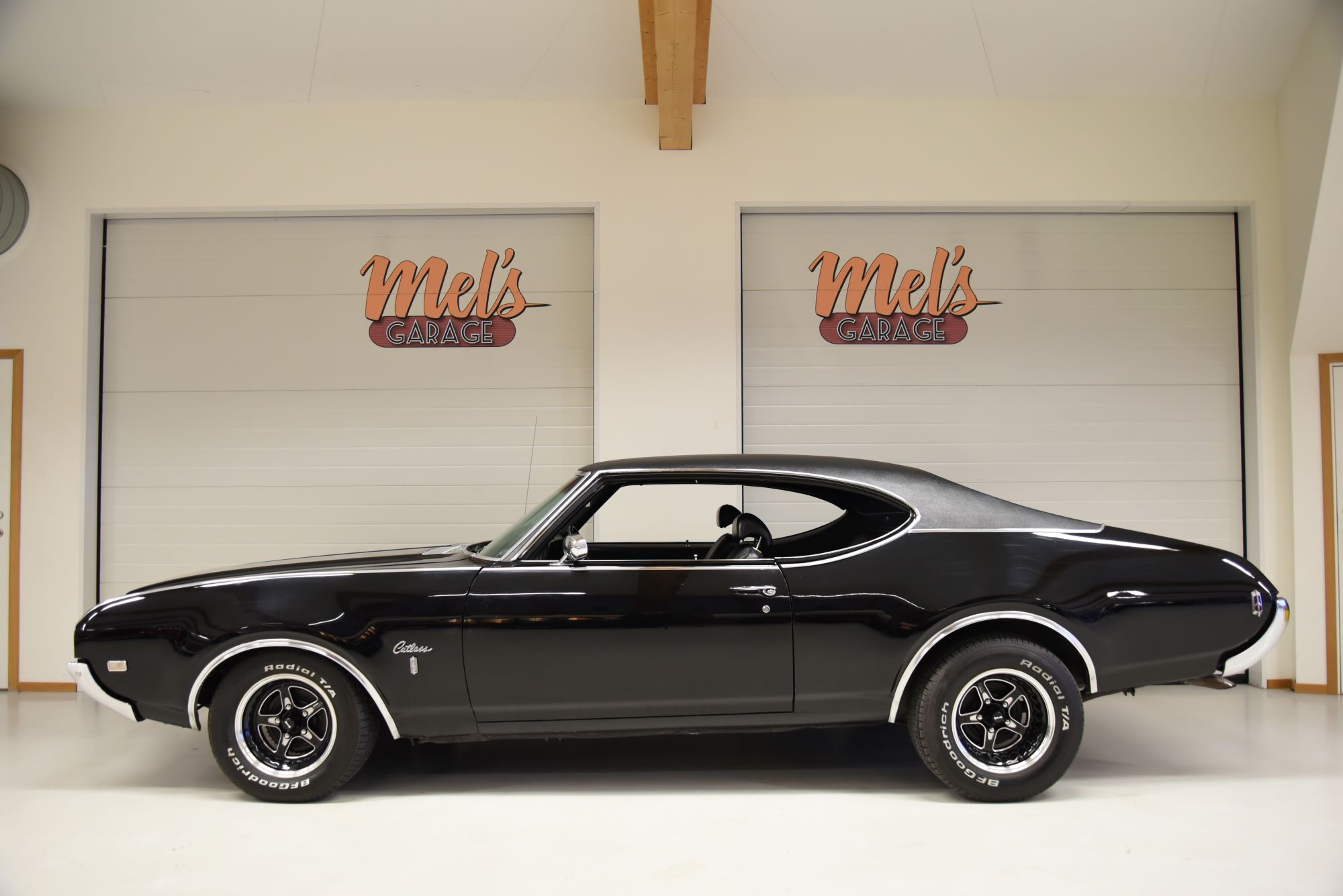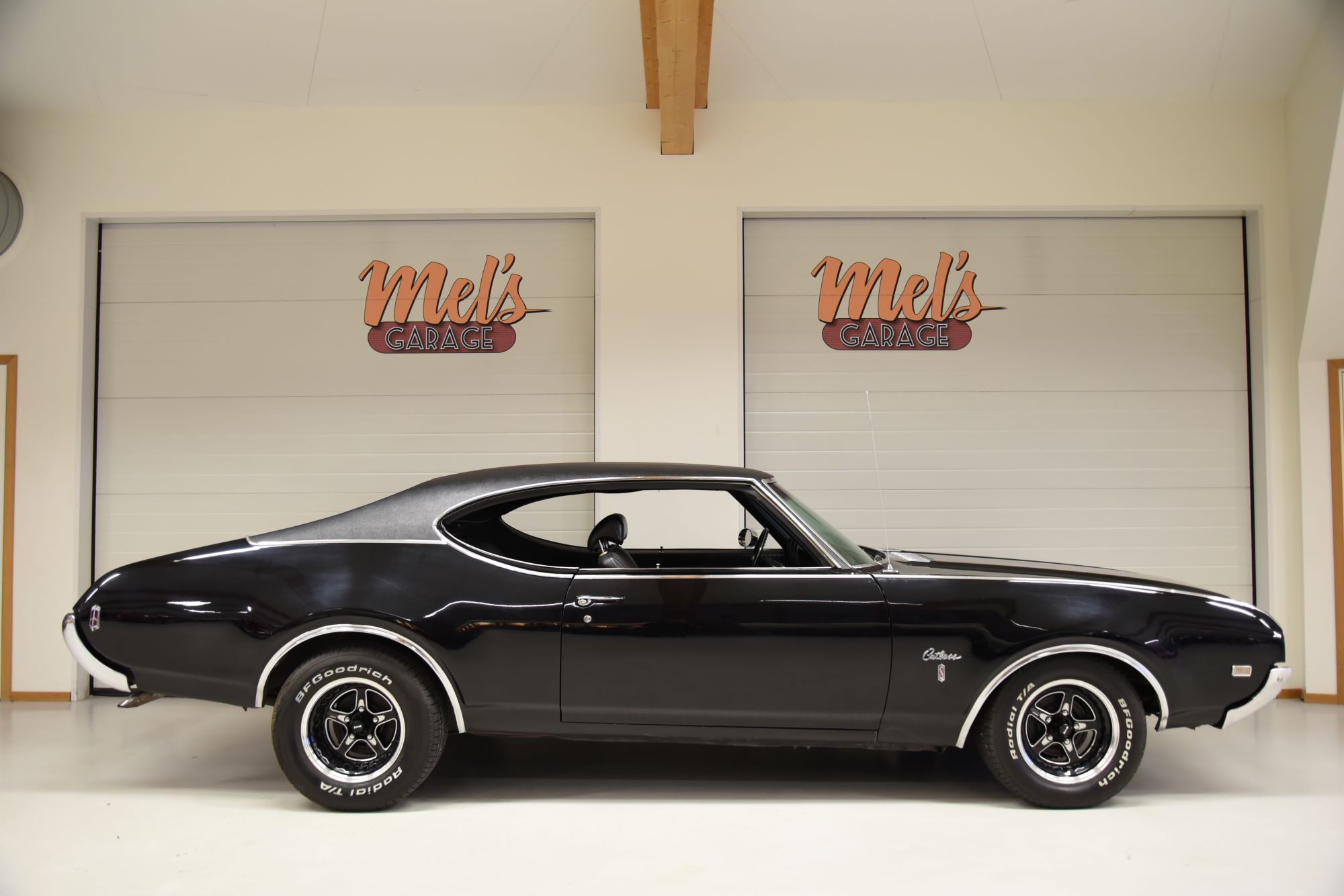 Oldsmobile Cutlass S Holiday Coupe 1969. V8 Rocket 350 4v som går riktigt fint. TH 200-4R automatlåda (3 vxl+överväxel). 12 bultad bakaxel trumbromsar fram och bak med servo. Servostyrning. Dubbelt avgassystem med härligt ljud. Hi Jackers. Delbar dragkrok (1230kg). AC som är urkopplad. Bälten fram och bak. Modern stereo med bas låda i bagagerum. Inredning i svart vinyl med golvkonsoll i ett allmänt fint skick rakt igenom. Nyare vinyltak som monterades 2008 i ett mycket fint skick. Blank svart lackering som är i ett mycket fint bruksskick så som kromet runt bilen. Ridler Street Pro fälgar med 23560-15 fram och 25560-15 bak med ca 7mm mönsterdjup. En mycket trevlig Cutlass som går riktigt bra i drivlinan så som på vägen och modellen är ju riktigt tuff med vinyltaket. Besiktigad 201707-28 och nu besiktningsbefriad.