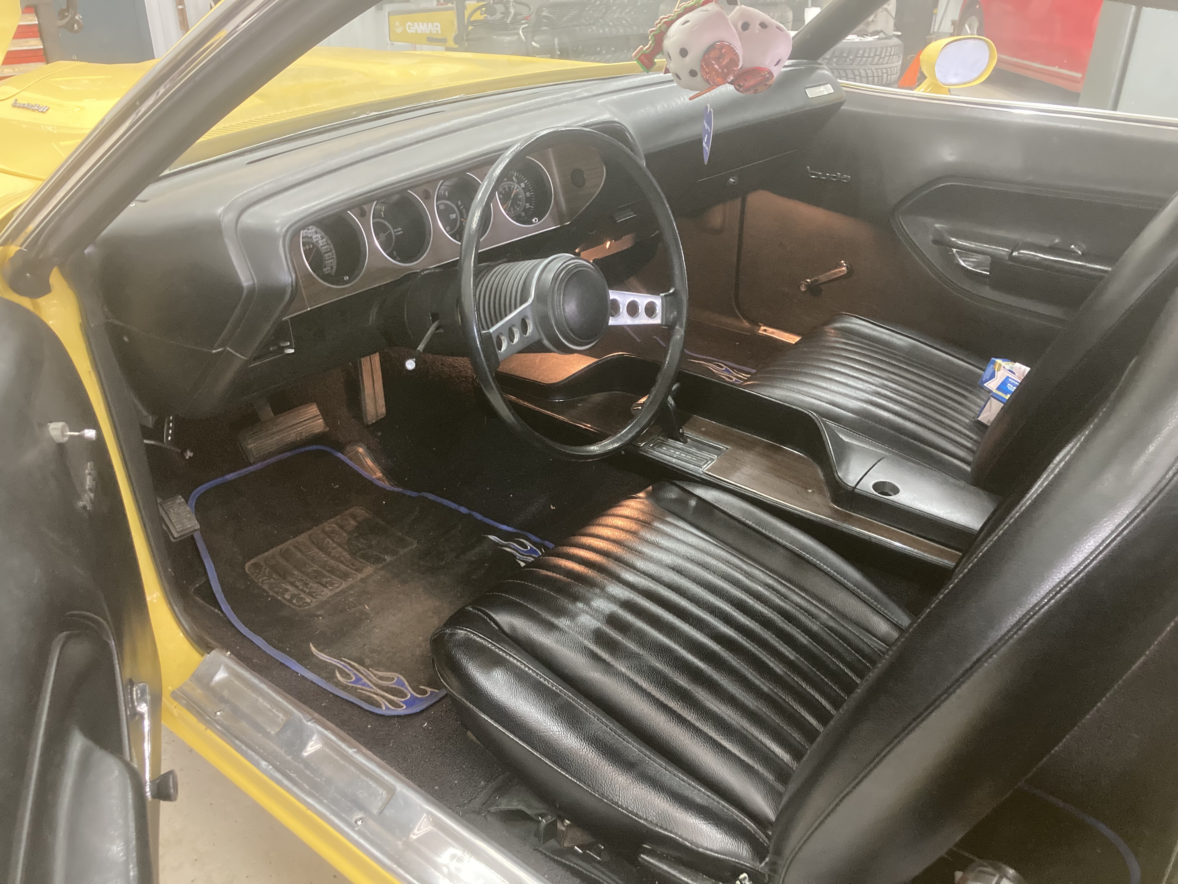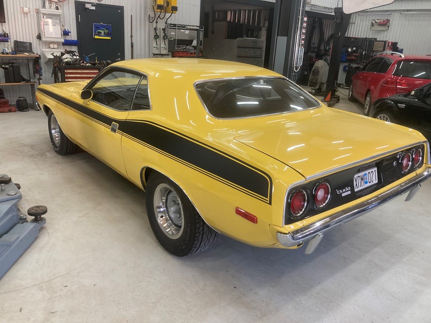 Exteriört kompletteras helheten med nya däck på tidstypiska 15” Rallye Wheels, samt Highjackers bak, vilket ger bilen ett klassiskt och korrekt muskelbilsstuk.