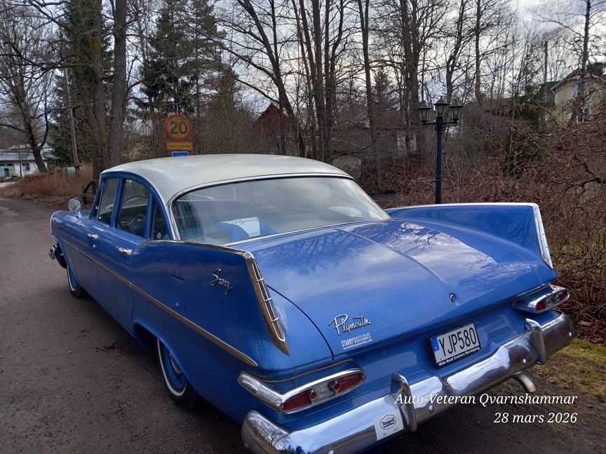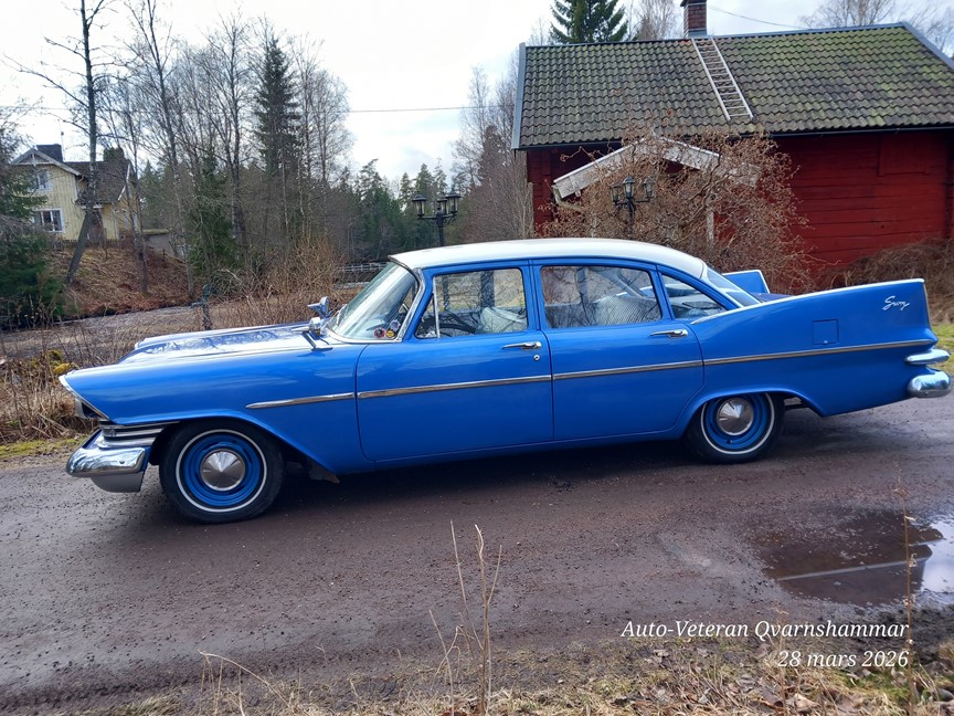 Plymouth Savoy 1959, 4d sedan, original sidventils sexa 230, 3.8lit 3vx man.Det finns endast 3 kända reg i Sverige varav denna är i originalutförande. Bilen är renoverad i USA, rostfri. Bilen går både billigt och bra